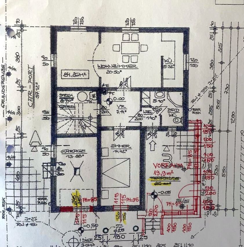 Sollte einmal Bedarf an zusätzlichen Schlafräumen bestehen, könnte im Obergeschoß der große Wohnraum ohne wesentlichen Aufwand mit einer Wand abgegrenzt und somit eine drittes Schlafzimmer geschaffen werden.
