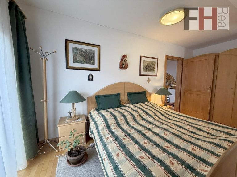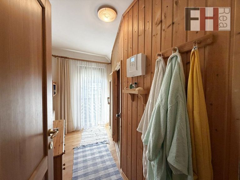 Über die schöne Holzstiege gelangen Sie in das Obergeschoss mit weiteren 3 Schlafzimmern, welche allesamt sehr vernünftig dimensioniert sind. Hervorzuheben ist natürlich der Masterbedroom mit knapp 20m² und Ausgang auf den Balkon mit toller Fernsicht, wobei auch ein weiteres Schlafzimmer diesen Vorteil genießt. Über das zentrale Vorzimmer haben alle Schlafzimmer Zugang zum großzügigen Bad mit Wanne und Dusche.