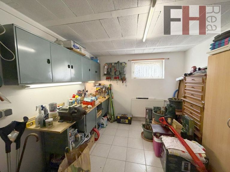 Das Kellergeschoß bietet besonders viel Stauraum wie auch Platz für die Technik. Geheizt und warmwasserversorgt wird mit einer Gastherme, der Specksteinkamin liefert zusätzlich Wärme bis in das Obergeschoss. Ein zentrales Staubsaugersystem erleichert die Hausarbeit.