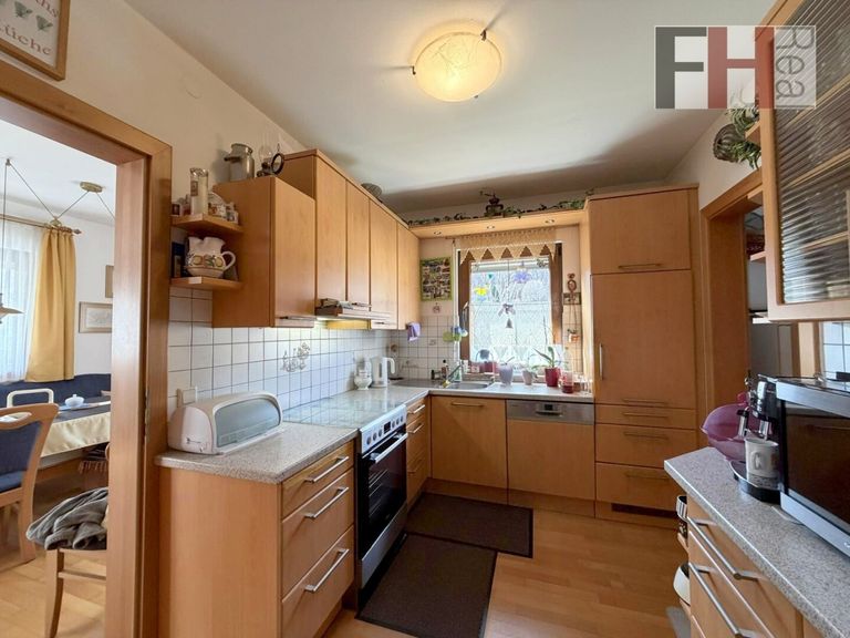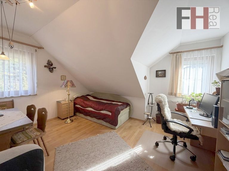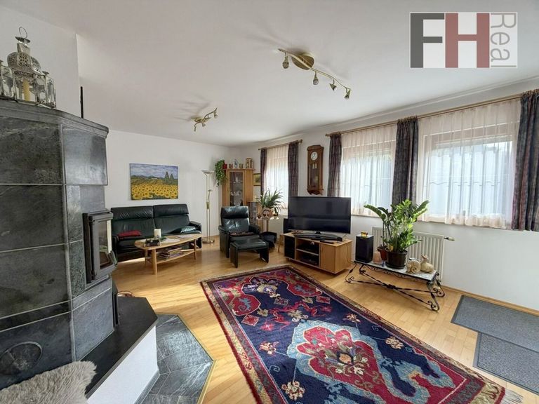 Das voll unterkellerte Einfamilienhaus von Haas wurde im Jahr 1999 errichtet, bietet 3 Ebenen und hat eine gesamte Wohnnutzfläche von mehr als 200m², wovon mehr als 135m² auf die beiden Wohngeschosse entfallen. Das Haus verfügt über insgesamt 5 Zimmer, die alle geräumig und lichtdurchflutet sind. Im Erdgeschoss ist die offene Gestaltung des Wohn-/Essbereichs und besonders das einladende Ambiete hervorzuheben. Die großen Fenster lassen viel Licht herein und bieten einen herrlichen Blick auf die umliegende Landschaft und in den Garten. Hier können Sie entspannen und die Aussicht genießen, während Sie sich in den Wintermonaten an der Wärme des großen Specksteinkamins erfreuen. Die vollausgestattete Küche, mit angeschlossener Speis, liegt gleich nebenan und ist idealerweise vom Ess- und Wohnzimmer erreichen. Auf dieser Ebene befindet sich weiters ein Schlafzimmer, welches natürlich ein perfekter Platz für Homeoffice ist, der großzügige Vorraum und ein Badezimmer mit Dusche und WC.