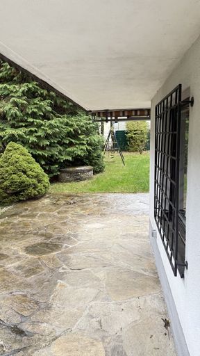 Der Garten ist sehr gepflegt und mit Altbaumbestand. Man kann links vom Haus entlang auch zum Garten kommen. Der Garten ist eben und fast uneinsichtig und hell.