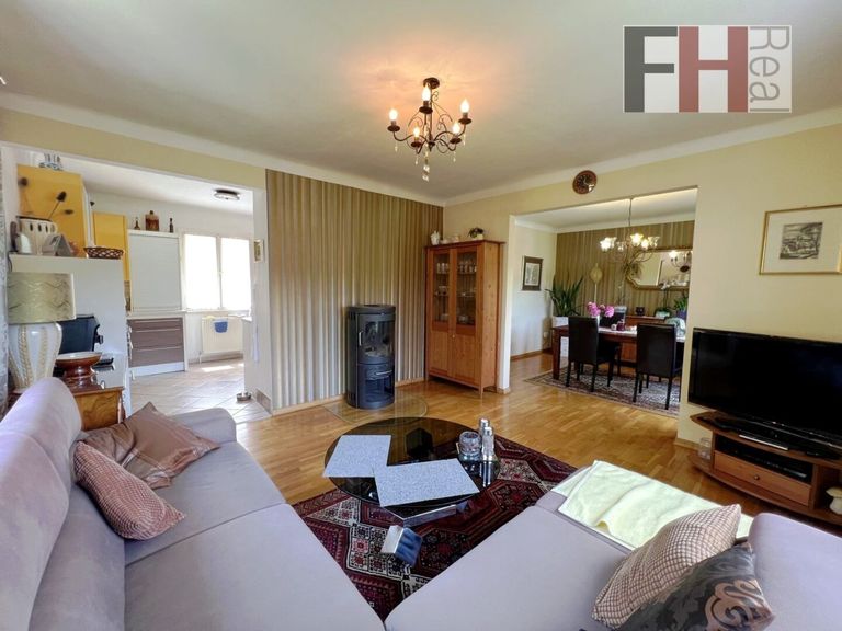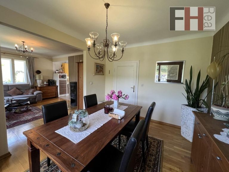 Das Einfamilienhaus wurde um das Jahr 1958 massiv errichtet, bietet 3 Ebenen und hat eine gesamte Wohnnutzfläche von mehr als 127m². Die Eigentümer haben es erreicht, dass trotz umfangreicher Modernisierungen im Inneren des Hauses der ursprüngliche Charme mit Holzkastenfenster und Fensterläden erhalten blieb. Das Haus verfügt über insgesamt 3 Zimmer, die alle geräumig und lichtdurchflutet sind. Im Erdgeschoss ist die offene Gestaltung des Wohn-/Essbereichs und besonders das einladende Ambiete hervorzuheben. Die großen Fenster lassen viel Licht herein und bieten einen herrlichen Blick auf die umliegende Landschaft und in den Garten. Hier können Sie entspannen und die Aussicht genießen, während Sie sich in den Wintermonaten am warmen Schein des Schwedenofens erfreuen.Die vollausgestattete Küche liegt gleich nebenan und ist sowohl vom Wohnsalon wie auch vom Vorzimmer zu erreichen. Auf dieser Ebene befindet sich weiters der großzügiger Vorraum und das Gäste-WC.