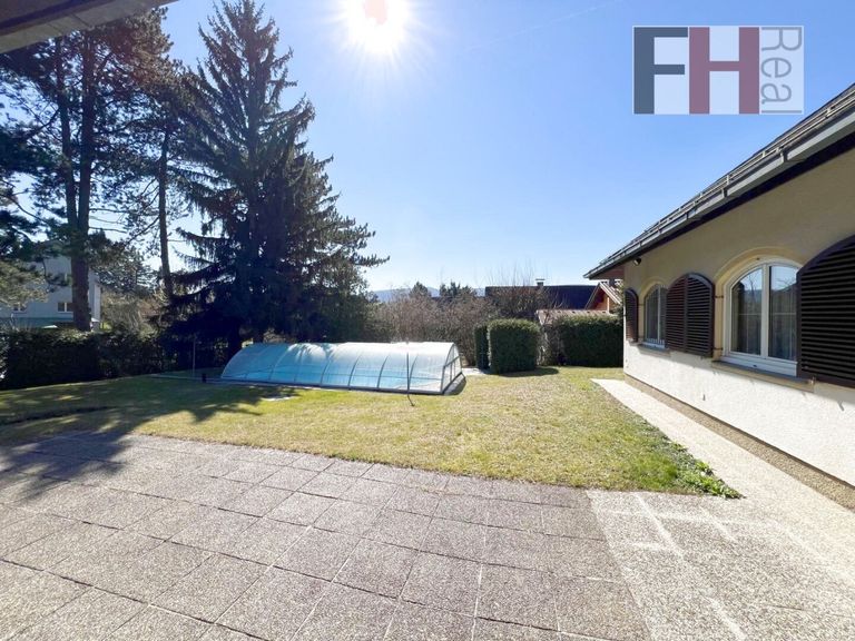 Die Liegenschaft befindet sich auf einem zentrumsnahen Gablitzer Südhang und ist somit ideal ausgerichtet. Das 1227m² große und ebene Grundstück ist Bauland Wohngebiet, 2 WE, BK 6,5/8,5 mit offener Bauweise. Der Garten ist sehr gepflegt, schön bepflanzt, Altbaumbestände und ein anschaulicher Gartenpavillon bieten auch im Sommer das eine oder andere schattige Rückzugsplätzchen. Der Bungalow wurde 1970 am Grundstück perfekt positioniert und besonders hochwertig errichtet, ein echtes Juwel, für welches sich die notwendige Modernisierung/Renovierung absolut lohnt. Der Grundriss ist gut durchdacht, die gesamte Wohnnutzfläche beträgt mehr als 290m², die reine Wohnfläche mehr als 206m². Geboten werden u. a. 6, entsprechend dem Verwendungszweck dimensionierte Zimmer, 1 Küche, 2 Badezimmer mit Badewanne/Dusche und separierter Toilette, 1 Gäste-WC und 2 Garagen, eine davon mit direktem Zugang in das Haus.
