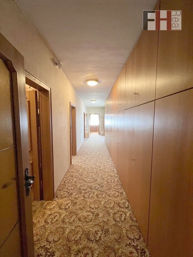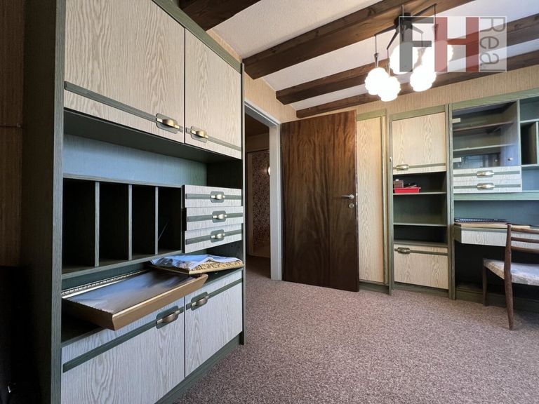 Sie betreten den L-förmig gebauten Bungalow über eine überdachte Südterrasse direkt über einen Windfang in den Vorraum mit viel Platz für die Garderobe. Zur rechten Hand gelangen Sie zu 3 von den 4 Schlafräumen und zu einem Kabinett, wobei der zentrale Vorraum durch einen zehntürigen Wandverbau/Schrank sehr viel Stauraum bietet und somit der Rest des Hauses ganz nach Ihrem Geschmack und Bedürfnissen eingerichtet werden kann. Eines dieser Zimmer könnte durch die Zusammenlegung mit dem Kabinett auf knapp 19m² vergrößert werden. Zu Beginn dieses Traktes befindet sich noch das Badezimmer mit kleinem Vorraum und separierter Toilette.