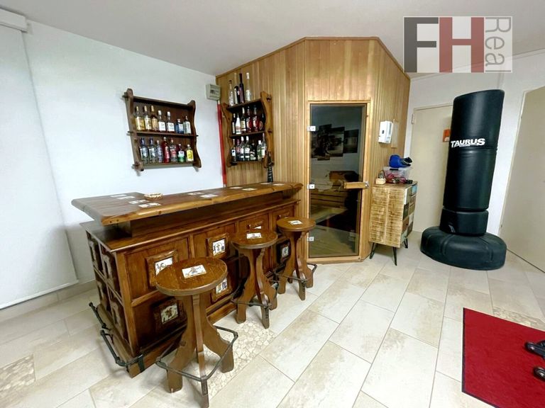 Auf der unteren Ebene, die Sie über eine spektakuläre Treppe von Entree im EG erreichen, gelangen Sie zum Saunaraum mit Dampf-Dusche mit Infrarot mit einem Platz zum Ruhen und Entspannen. Eine kleine Bar und ein separater Weinkeller lädt zur "Erholung" mit Freunden ein. Weiters befinden sich im Untergeschoss der Heizraum mit einer neuen Luftwärmepumpe, jene im Sommer kühlt und an kühlen Tagen eine angenehme Wärme über die Fußbodenheizung gibt. Weiters ein eigener Technikraum, ein "Golfzimmer", eine Speis und diverse Abstellmöglichkeiten für Fahrräder, Gartengeräte und sonstiges Allerlei.