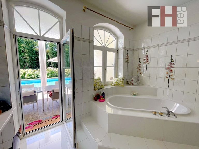 Die Liegenschaft befindet sich im eleganten Gablitzer Ortsteil Hochbuch in bester Lage mit Fernsicht und einer Ausrichtung nach Süden/Westen. Das 1464m² große, nahezu ebene Grundstück bietet jeden erdenklichen Komfort mit solarbeheiztem Pool, Weinkeller und einer großen überdachten Terrasse für Privatnutzung oder für angenehmen Stunden mit Ihren Gästen. Der Garten ist sehr gepflegt, schön bepflanzt und bietet auch im Sommer das eine oder andere schattige Plätzchen. Die exklusive Villa wurde im Jahr 1986 in idealer Position am Grundstück neu errichtet und immer wieder hochwertig modernisiert und energieeffizient optimiert. Der Grundriss ist sehr repräsentativ und nahezu perfekt geplant, die Großzügigkeit des Anwesens ist beeindruckend und sucht ihresgleichen. Die gesamte Wohnnutzfläche beträgt mehr als ca. 385m², die reine Wohnfläche ca. 245m². Geboten werden u.a. 5 gut dimensionierte Zimmer, 1 Küche, 2 Bäder, 2 Toiletten plus Nebenräume und eine südseitige Terrasse mit mehr als 40m².