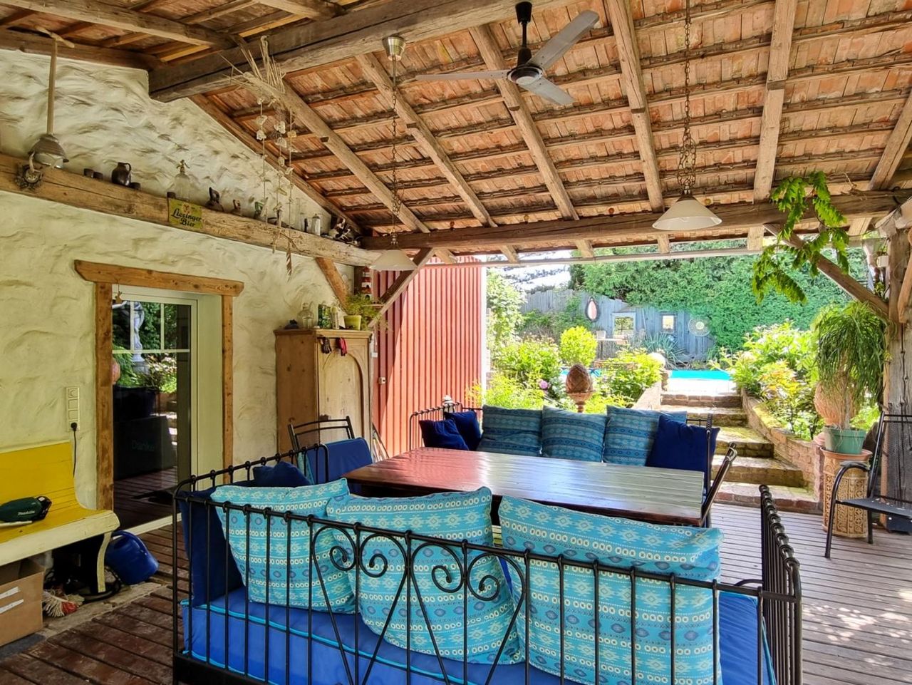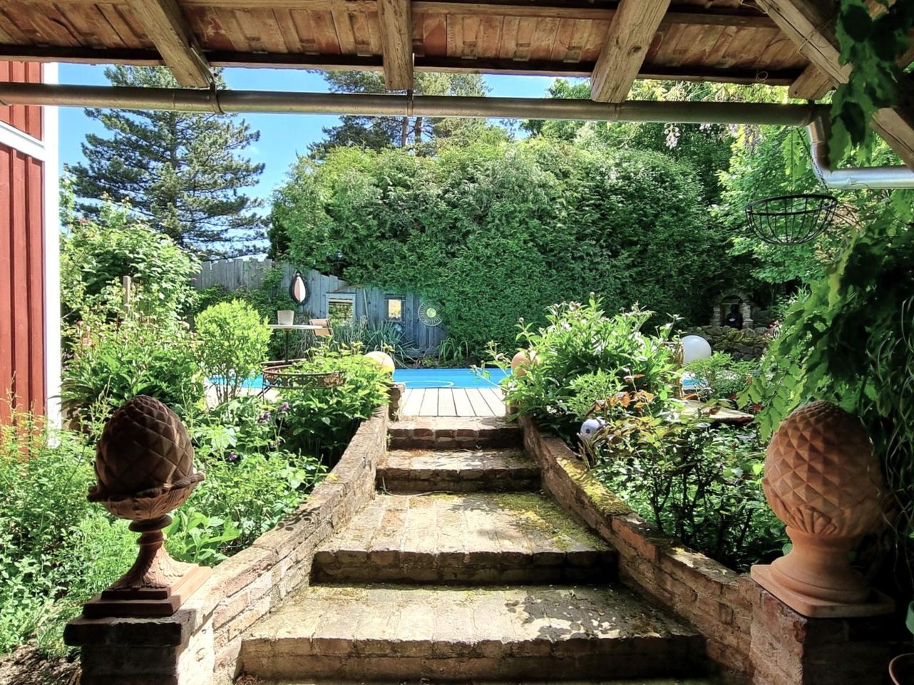 GARTEN: Eben bis leichte Neigung, sonnig; schöner Altbaum,- und Strauchbestand und Swimmingpool vorhanden;