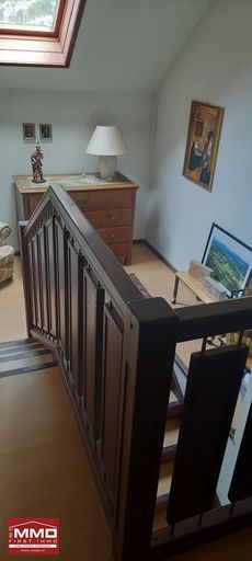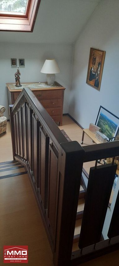Im Dachgeschoß geht es rechts in ein großes Wohnstudio mit Küchenzeile und Schwedenofen. Links kommt man in ein geräumiges Zimmer, welches als Gästebereich und Büro genutzt wurde. Ein komplett eingerichtetes Bad mit Systemdusche, Bidet, Waschtisch und Toilette ergänzt den Gästebereich. Ein praktischer kleiner Abstellraum ist vorhanden.