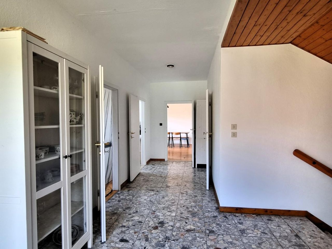 BESCHREIBUNG: Einfamilienhaus in Massivbauweise, Baujahr ca. 1966, Bramac-Dach mit Vollschalung, der Dachgeschossausbau erfolgte ca. 1980, alte Ölzentralheizung mit Radiatoren, Fliesen-, Teppich- und Holzböden, Holzfenster; Eine Modernisierung des Hauses ist erforderlich; Energiekennzahlen: HWB 240 kWh/(m²a); fGEE 4,2