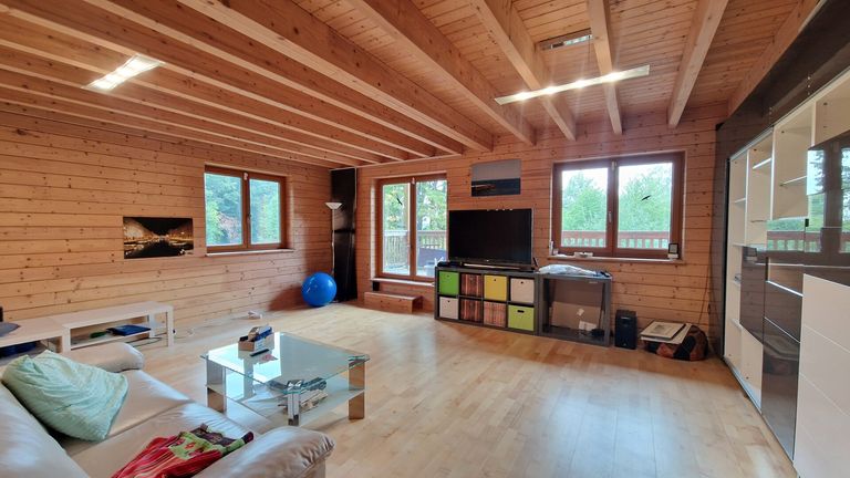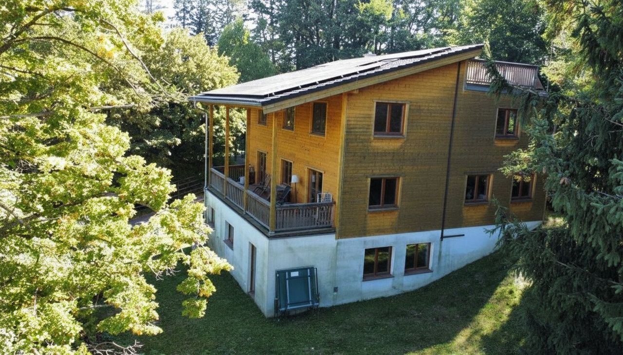Zum Verkauf steht eine ökologische Familienresidenz aus schwedischer Polar-Kieferbohle (gedämmt mit Schafwolle), die für ein unvergleichlich gesundes Wohnklima sorgt. Mit ca. 253 m² Wohnfläche und 7 Zimmern bietet das Haus Platz für alle Bedürfnisse.