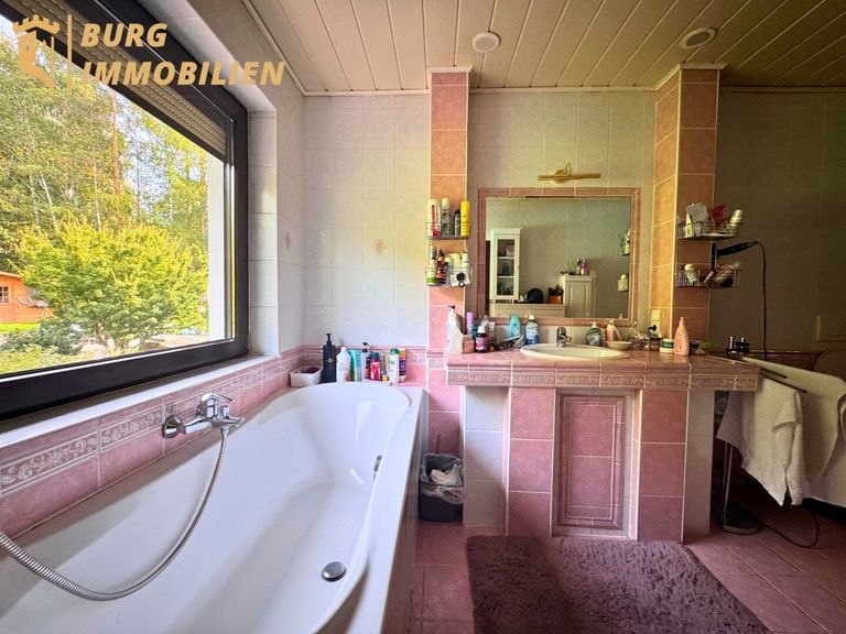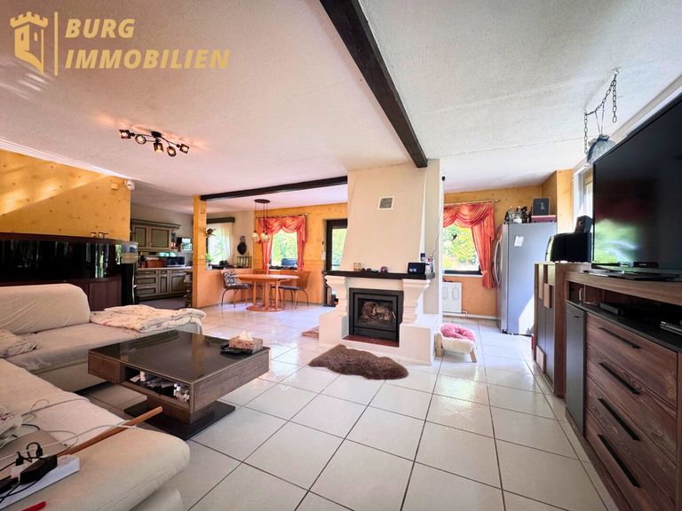 Wohnen & Wellness: offener Kamin, Whirlpool, Sauna; Vollkeller mit Werkstatt. bewährte Öl-ZH – gute Basis für Hybrid-/Umrüstkonzepte.