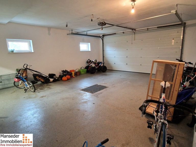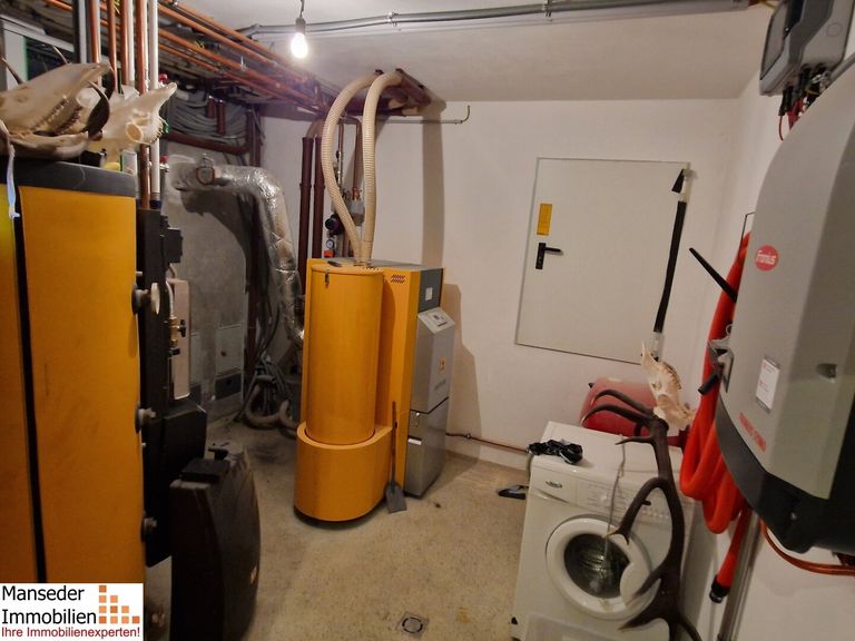 Und damit noch nicht genug an Geräumigkeit! Die Vollunterkellerung sorgt dafür, dass auch genügend Stauraum zur Verfügung steht. Neben einem großen Kellerraum erwarten Sie ein Hauswirtschaftsraum, der Technikraum, das Pelletslager, ein Duschraum mit WC sowie eine große Garage mit Pooltechnikraum.