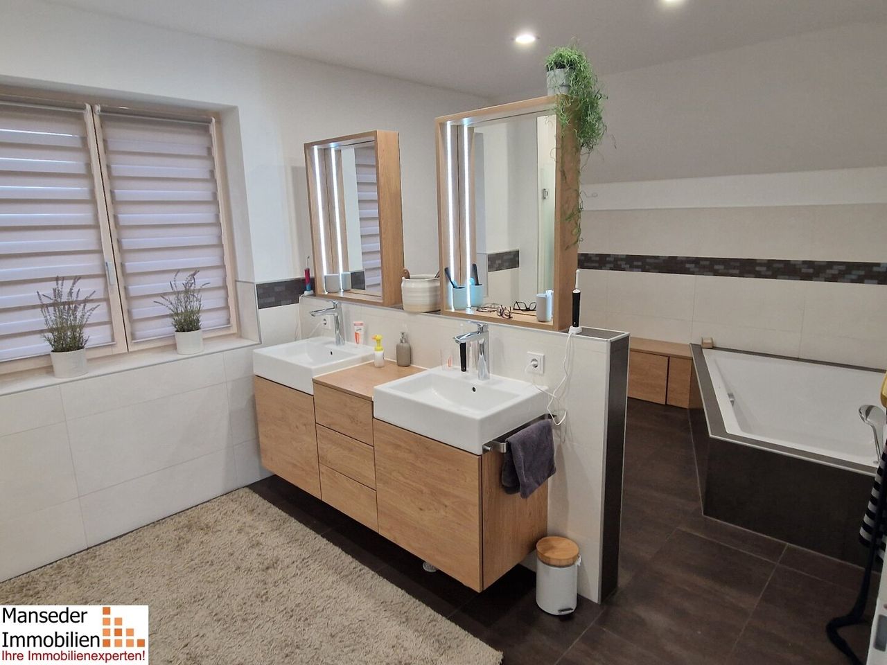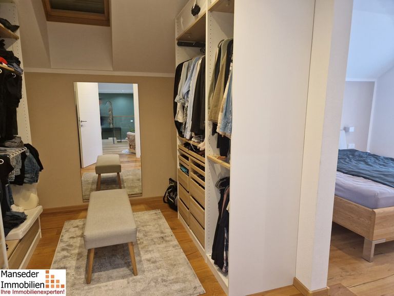 Das Dachgeschoß sticht ebenso durch hervorragend durchdachte Raumaufteilung und Geräumigkeit hervor. Von der Galerie aus sind sämtliche Räumlichkeiten zentral begehbar. Neben dem Schlafzimmer mit Schrankraum erwarten Sie weitere 3 Zimmer sowie ein Bad und WC. Das Badezimmer fügt sich in die Geräumigkeit dieser tollen Liegenschaft ein und ist auf ca. 19,50 m² Fläche mit Badewanne, Dusche, Doppelwaschbecken und Kosmetiktisch ausgestattet.