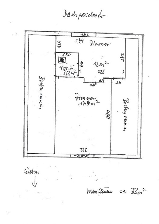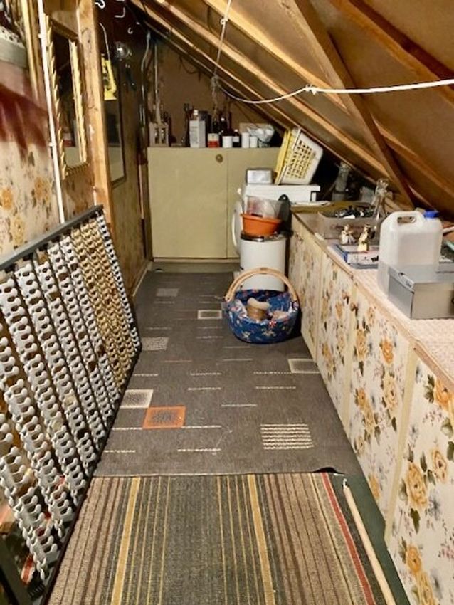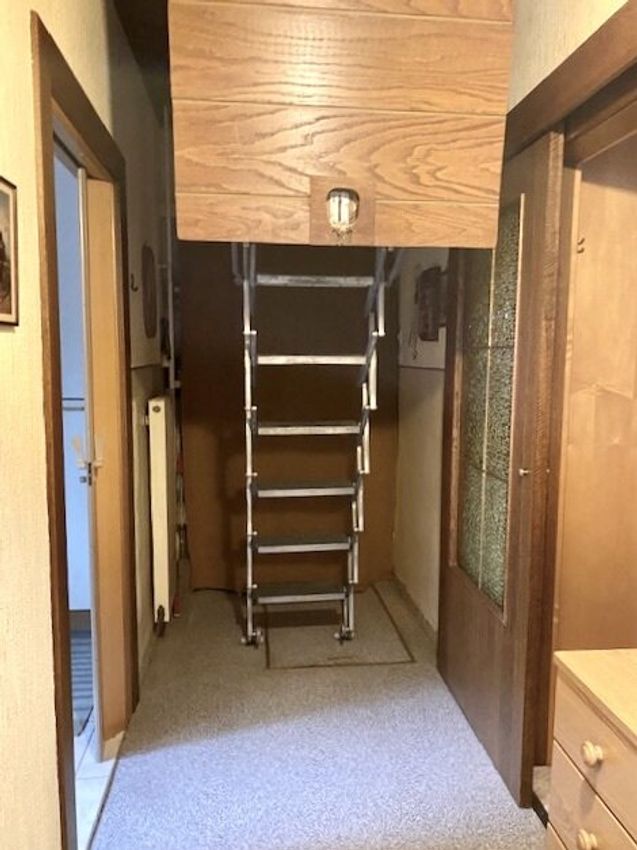 Über eine ausziehbare Treppe gelangt man in das Dachgeschoß. Es wurde ausgebaut und bietet mehrere Räume, die jedoch nicht als offizieller Wohnraum zu betrachten sind.