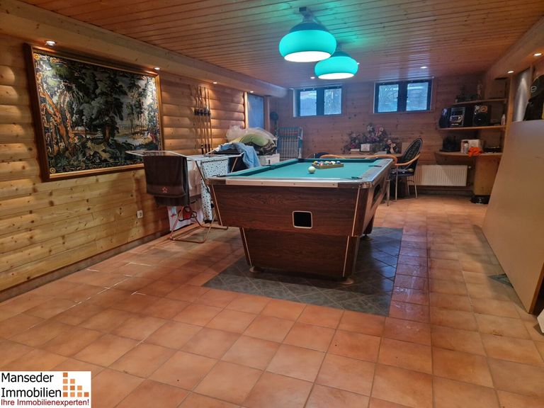 Die Vollunterkellerung sorgt dafür, dass einerseits genügend Stauraum gegeben ist und andererseits mit Wellnessbereich, Bar und Billardraum tolle Räumlichkeiten mit genügend Platz für die Freizeitgestaltung zur Verfügung stehen. Auch für die fahrbaren Untersätze ist mit 2 Garagen genügend Platz vorhanden.