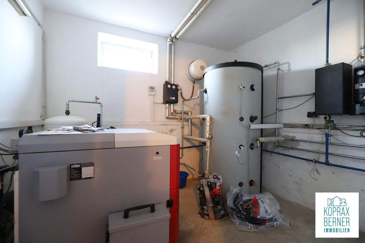 Beheizt wird die Liegenschaft umweltfreundlich mit einer Pelletsheizung, die von einer Thermischen Solaranlage unterstützt wird.