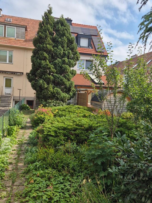 Im Erdgeschoss befindet sich ein Vorraum, ein Wohnzimmer mit Zugang in den Garten, eine separate Küche möbliert mit Fenster und kleinen Essbereich, sowie ein WC extra.