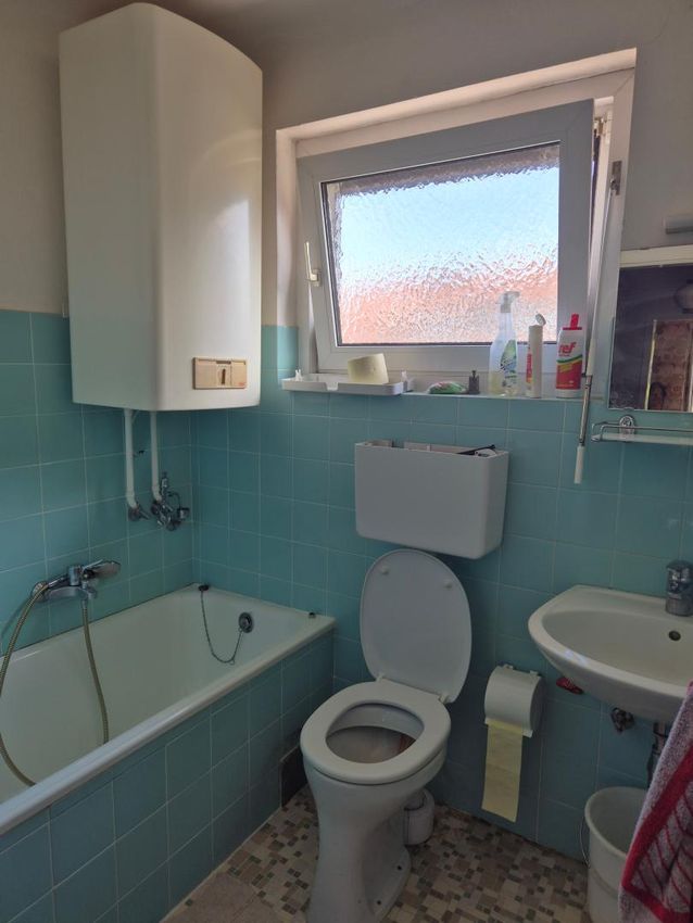 Im Obergeschoss befinden sich 2 Schlafzimmer und ein Bad mit Badewanne, WC und Fenster.