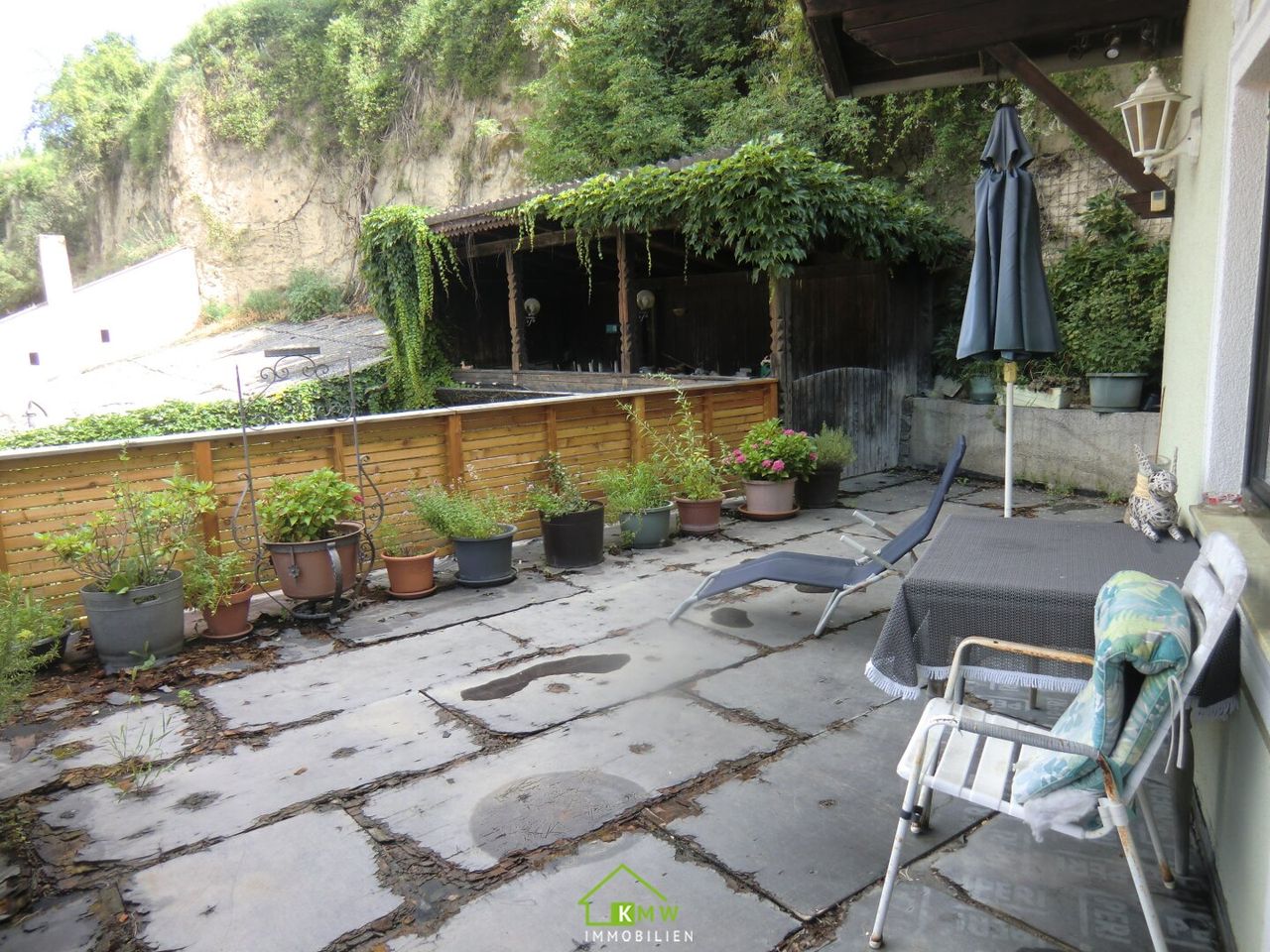 Dieses Haus besteht aus Erdgeschoß , Obergeschoß, gewölbten ehem. Weinkeller, Terrasse. Gegenüber befindet sich eine dazugehörige Garage mit Werkstatt (ca. 30m²)