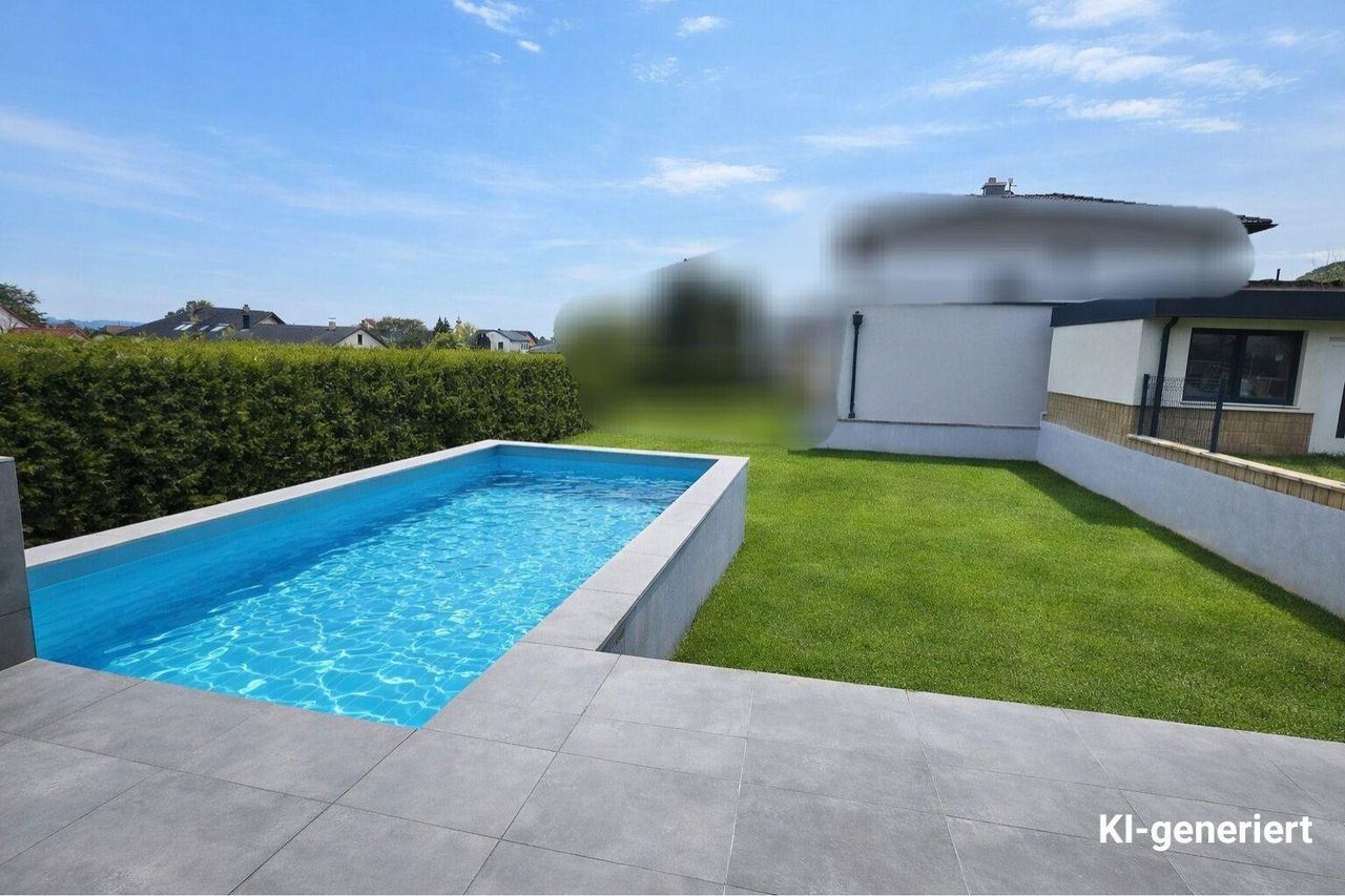 Ein besonderes Highlight ist der direkt angrenzende 3 x 6 m große Pool – von der ca. 22 m² großen Terrasse gelangen Sie mit nur einem Schritt ins kühle Nass.