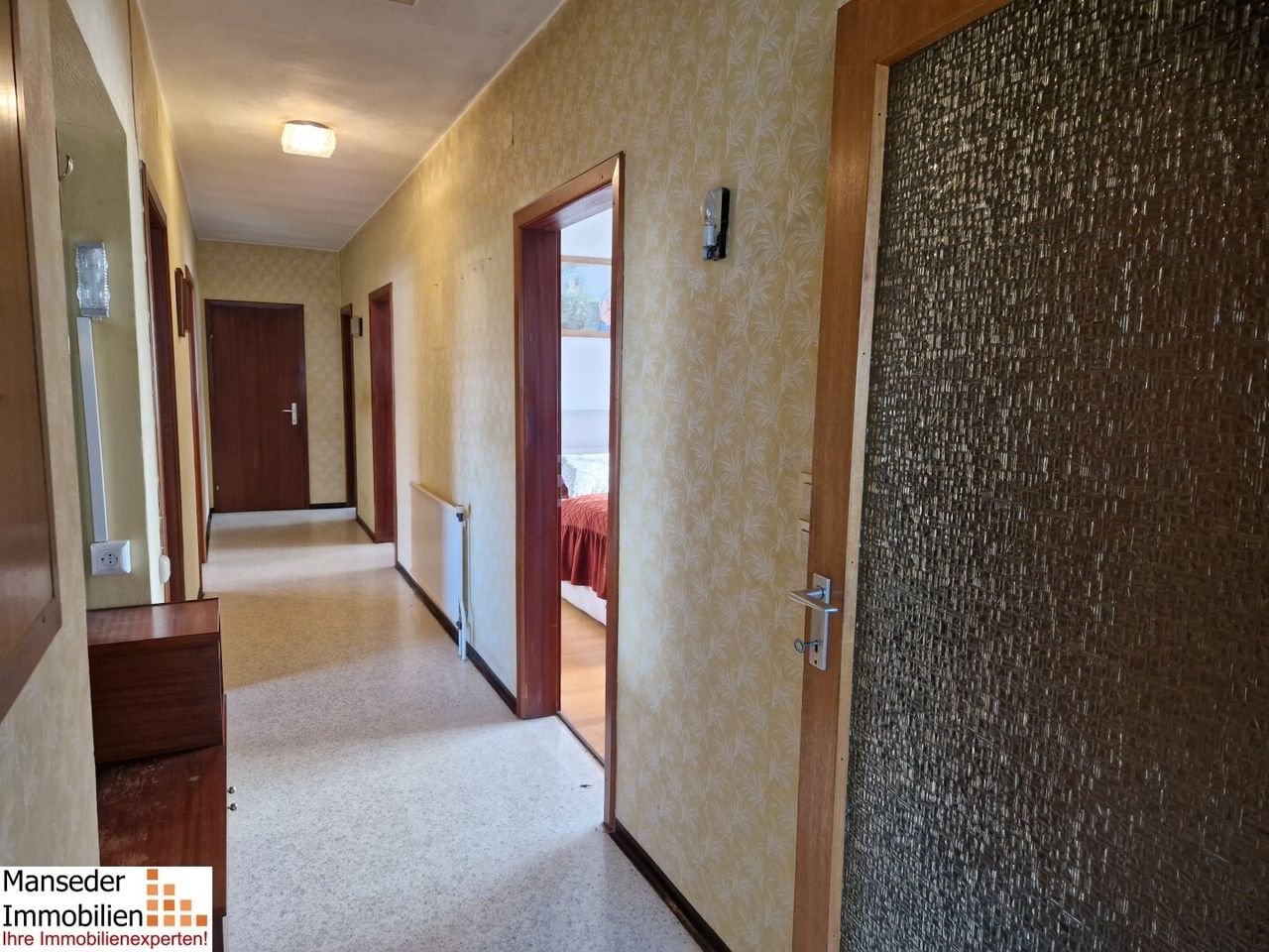 Für das Einfamilienhaus wurde im Jahr 1972 die Baubewilligung erteilt und erfolgte im Jahr 1980 die entsprechende Benützungsbewilligung. Durch die gute Raumaufteilung sind sämtliche Räumlichkeiten zentral begehbar. Im Erdgeschoß erwarten Sie mit Veranda, Vorraum, Wohnzimmer, Küche, Speis, Schlafzimmer, Zimmer/Kabinett, Bad und WC eine Wohnfläche von ca. 87,20 m².