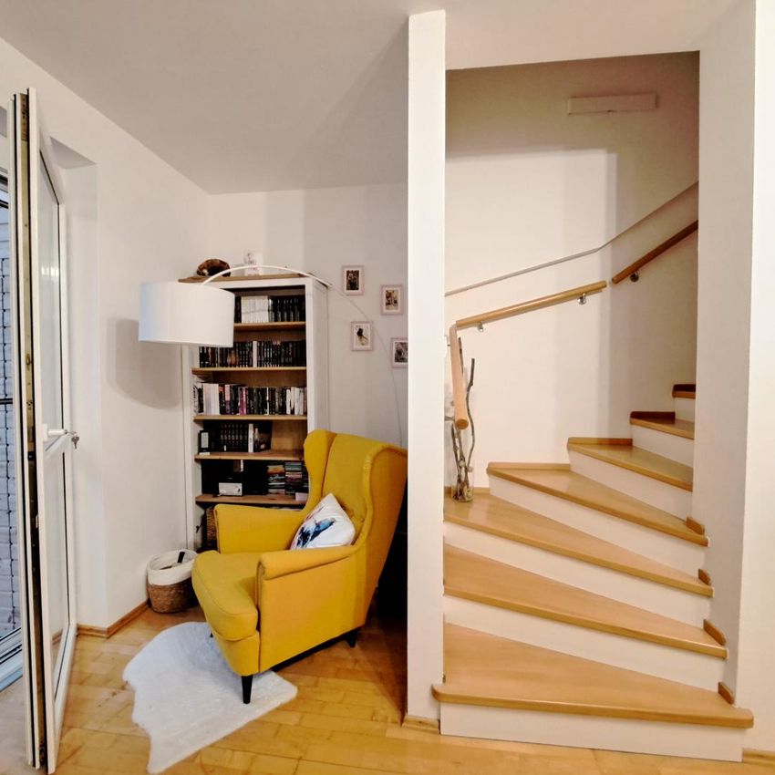 Eck-Reihenhaus in ruhiger Lage! In der Nähe von St. Pölten! Die Wohnfläche dieses ca. 2000 erbauten Reihenhauses mit ca. 111m² WFL teilt sich wie folgt auf: Im Eingangsreich betreten wir das Vorzimmer mit Garderobe. In dieser Ebene befindet sich, da das Haus in eine Hanglage gebaut wurde, auch der Heizraum, Lagerraum für die Pellets und ein Wirtschaftsraum. Über eine geflieste Treppe geht es ins geräumige EG: Zuerst in den offenen Wohnbereich mit Ausgang auf die Terrasse, wo man am Abend in Ruhe ein Glas Wein genießen kann! Es gibt hier die Möglichkeit einen Ofen anzuschließen. Auf dieser Ebene befindet sich...