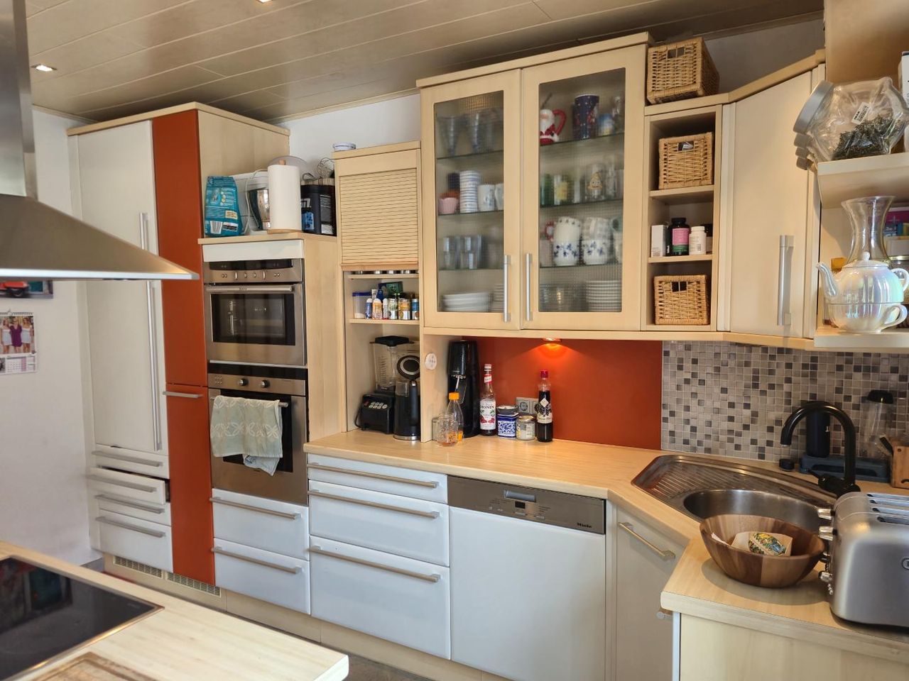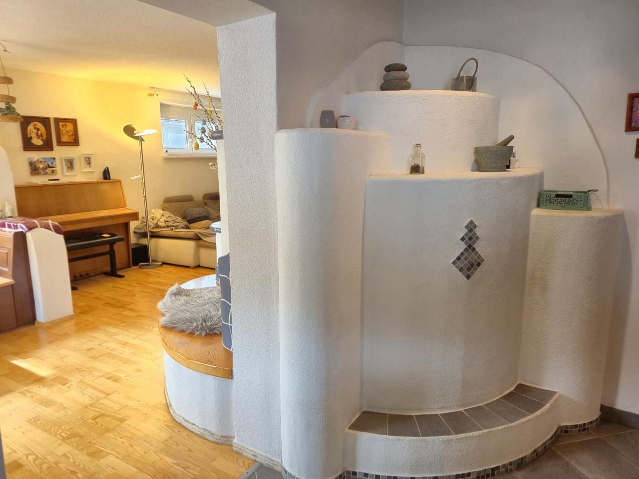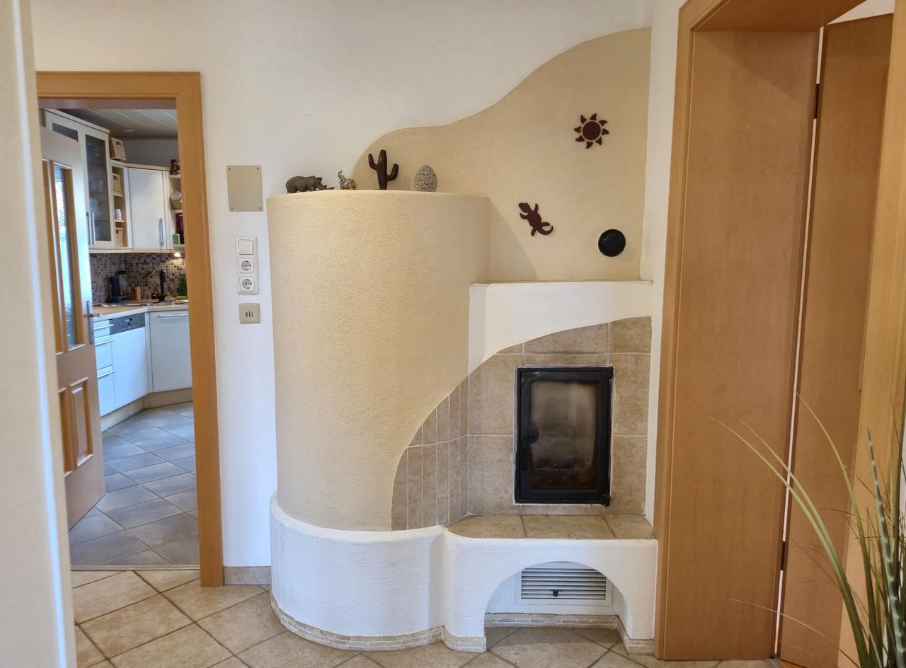 sehr schöner, großer Kachelofen mit Wärmeabgabe in den Gang, die Küche und das Wohnzimmer