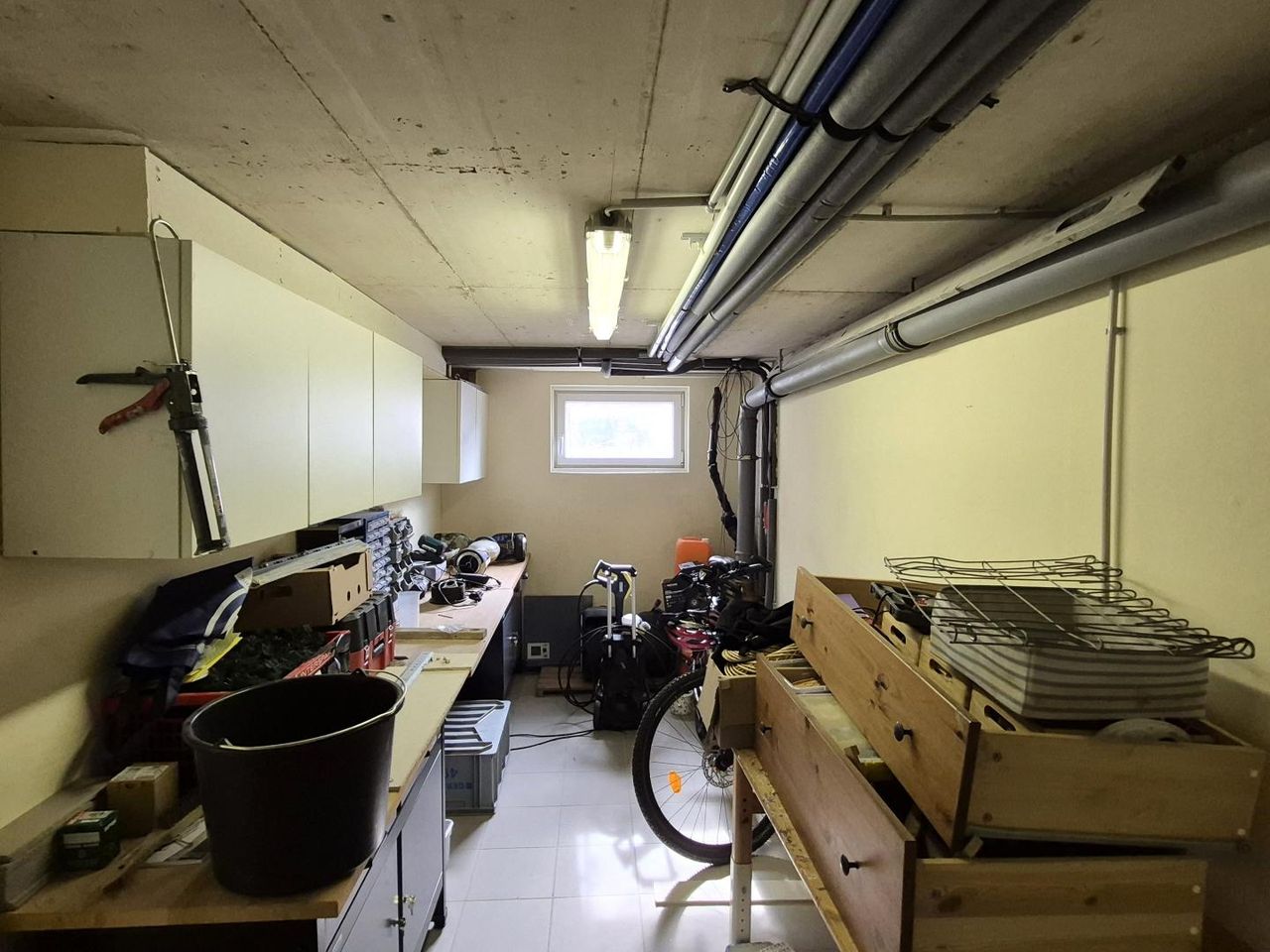 KELLERGESCHOSS: (76 m²): Gang, ausgebauter, beheizbarer Fitness- bzw. Wellnessraum mit Dusche und Waschbecken, Werkstatt, Lagerräume, Heizraum. Der Keller ist von außen begehbar und teilweise mit einer Fußbodenheizung ausgestattet