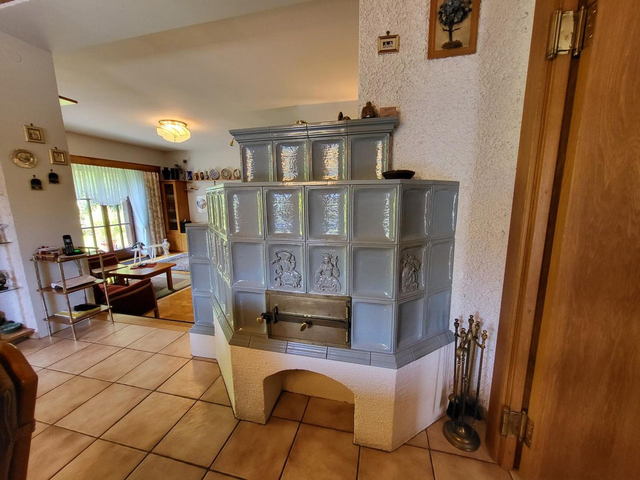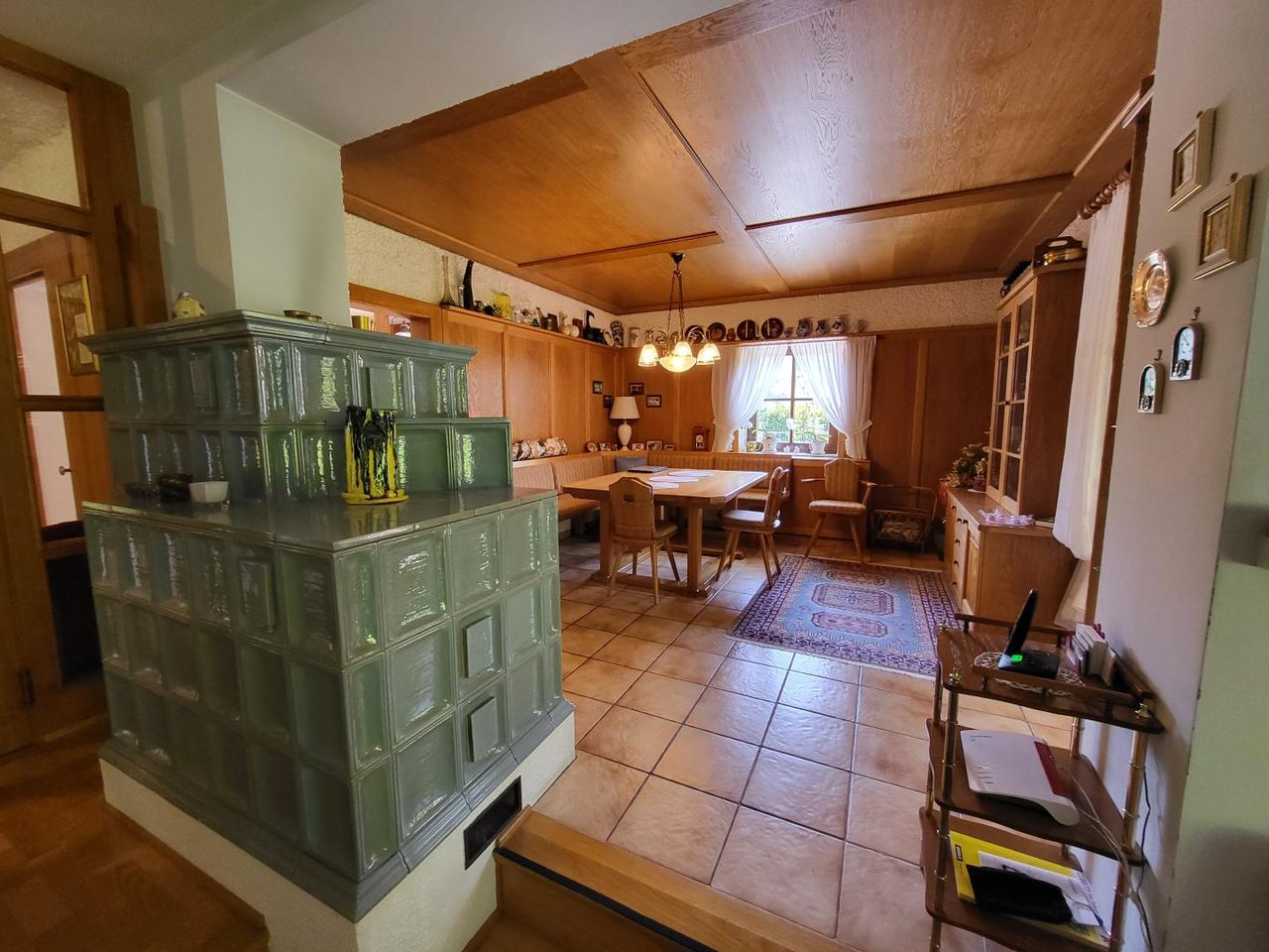 Beheizt wird das Objekt mit einer Ölzentralheizung und einem schönen großen Kachelofen. Die Fenster sind aus Holz. Die Böden sind mit Fliesen und Parkett belegt.