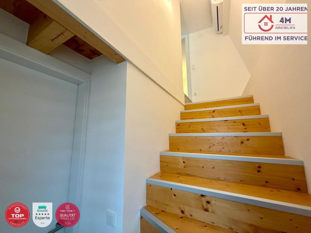 Der einladende Vorraum führt in die stilvolle Wohnküche, die dank direktem Zugang zur überdachten Terrasse einen fließenden Übergang zwischen Innen- und Außenbereich schafft. Ein separates WC sowie der Treppenaufgang ins Obergeschoss ergänzen diese Ebene.