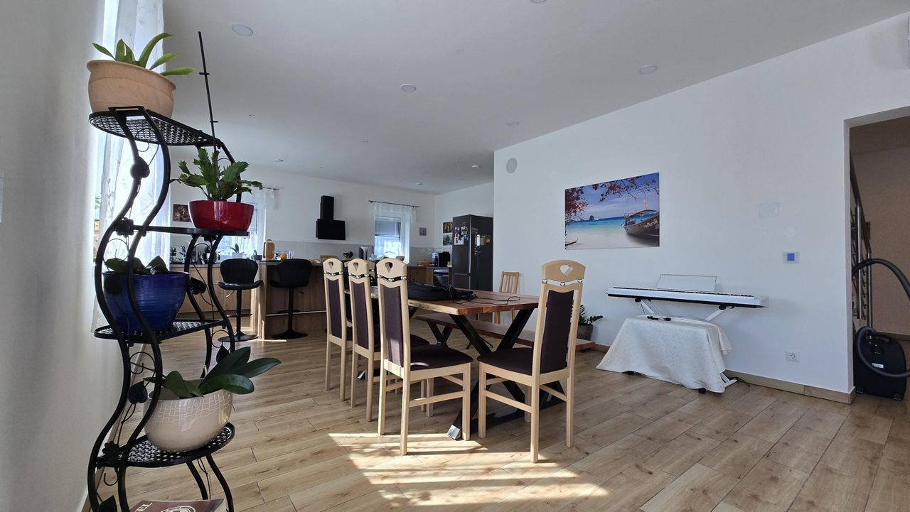 Das Herzstück des Hauses bildet ein beeindruckender, offener Wohnbereich mit ca. 60 m² Wohn-/Ess-/Küchenfläche – lichtdurchflutet und perfekt für modernes Wohnen.