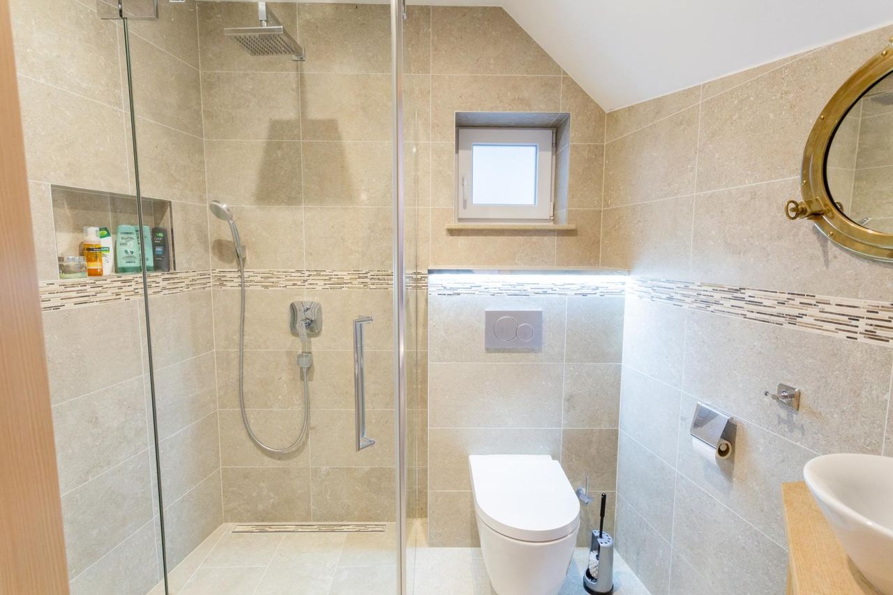 - Ein Bad – Dusche, Wanne, Doppelwaschbecken