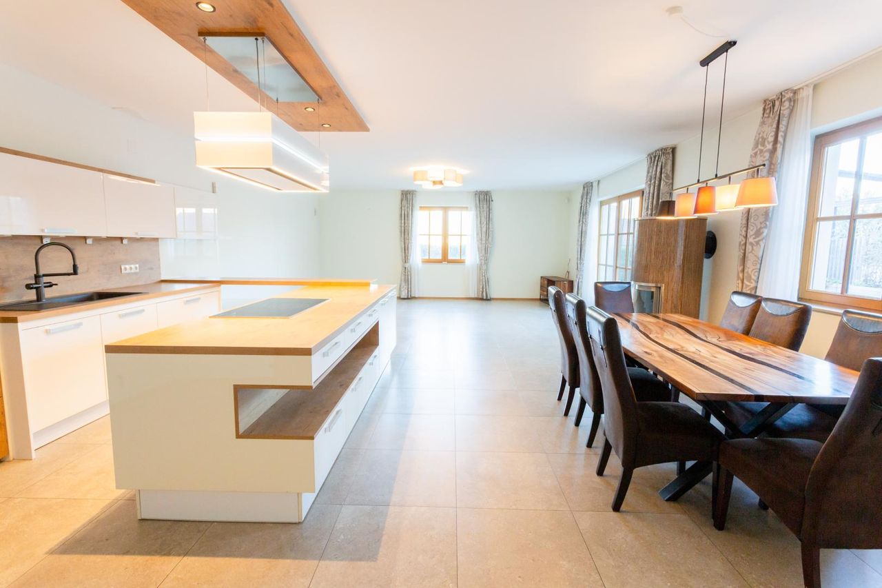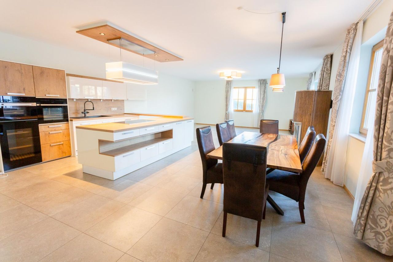 Diese Etage verbindet gekonnt Landhausflair mit modernem Wohnkomfort und überzeugt mit hochwertiger Ausstattung und einem mehr als großzügigen Wohn-Essbereich, den Sie und Ihre Gäste lieben werden.
