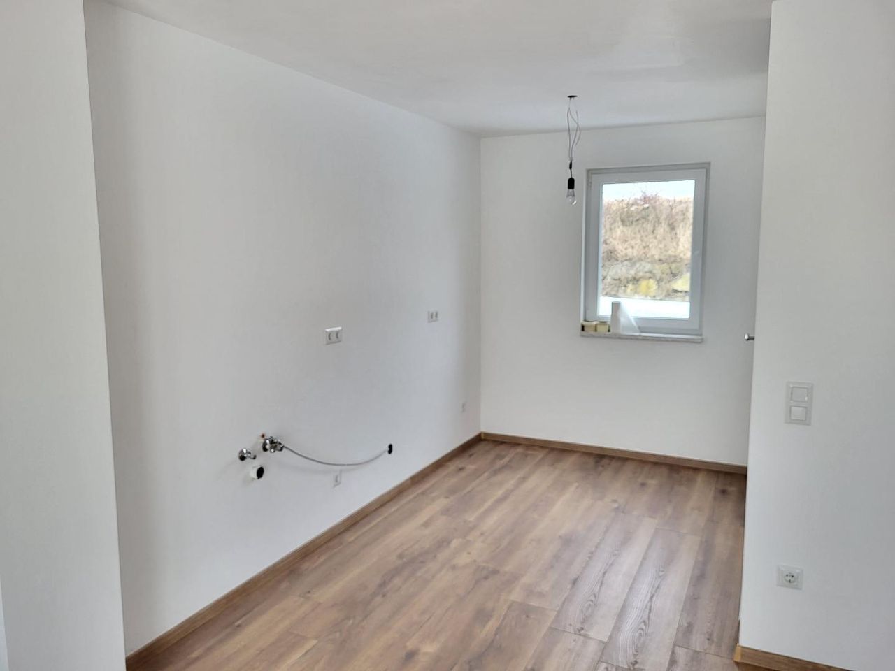 Erdgeschoss: großer Wohnraum mit integrierter Küche, WC, Terrasse