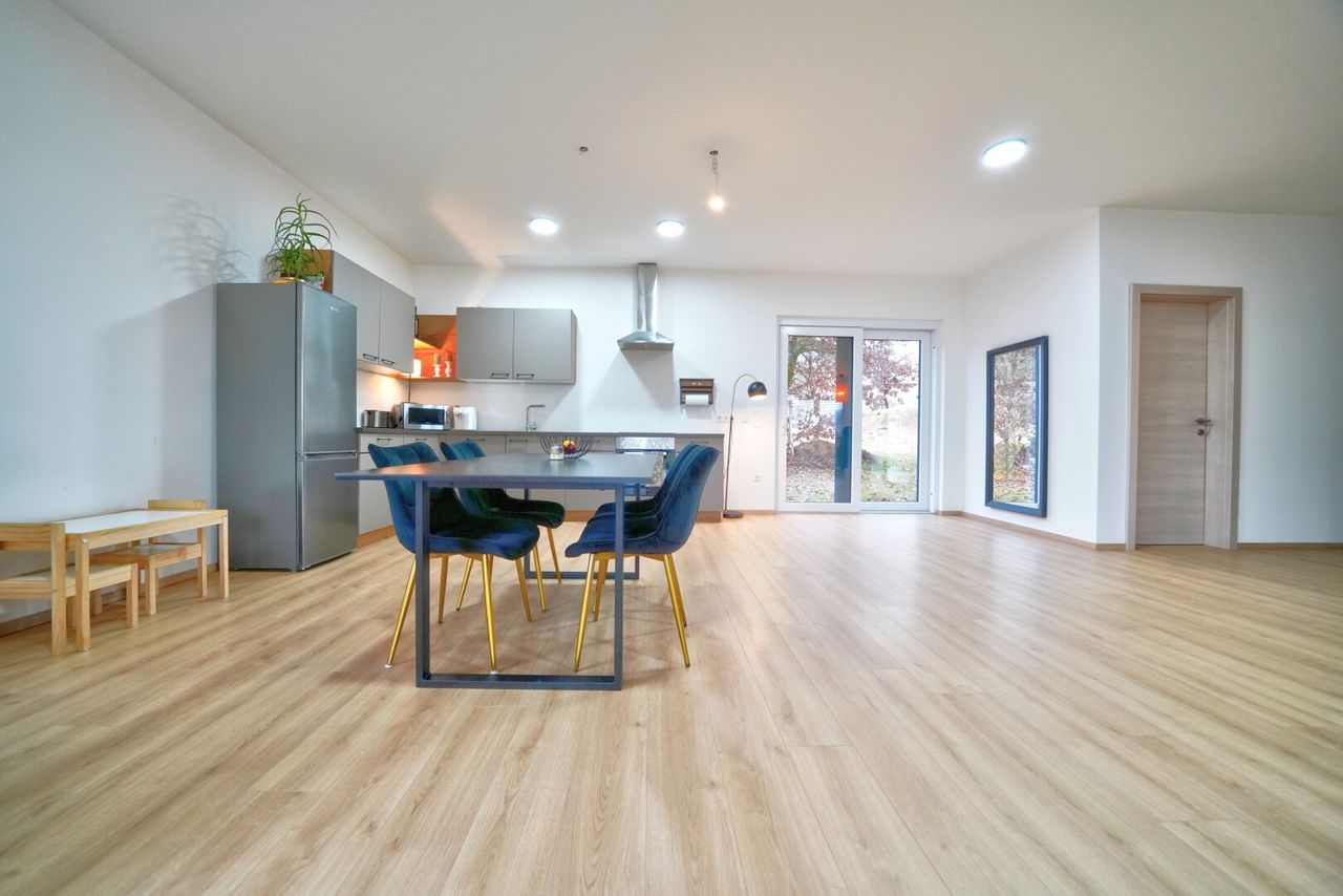 - Weitläufiger Wohn-, Ess- und Küchenbereich
