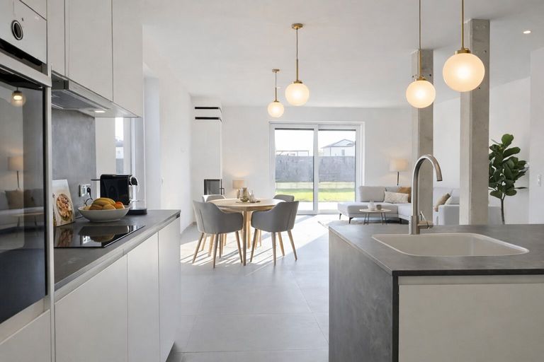Die offene Küche geht harmonisch in den Wohnbereich über, perfekt für gemeinsames Kochen, Genießen und Zusammensein.