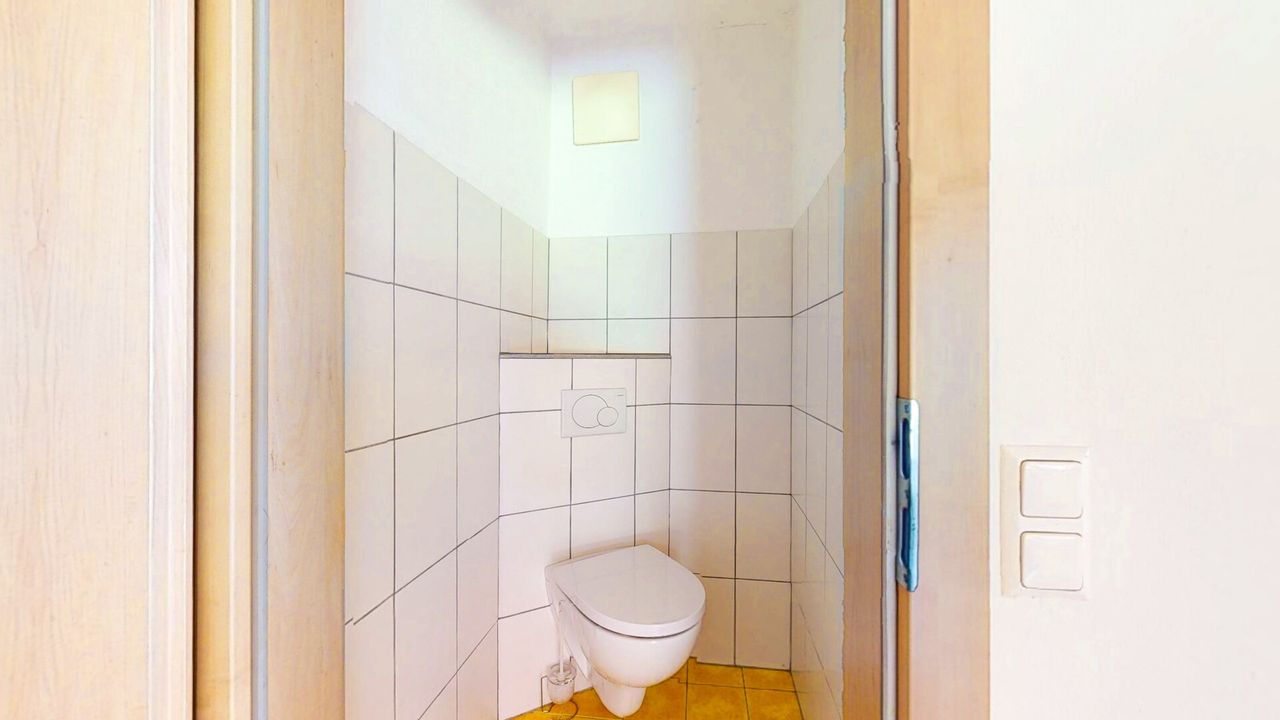 Die kleine Erdgeschosswohnung (ca. 22 m²) ist eine kompakte Garçonnière mit Wohn-/Schlaf-/Kochbereich und WC. Aktuell wird ein Teil des Raumes als Sauna genutzt, eine Küche kann problemlos ergänzt werden.