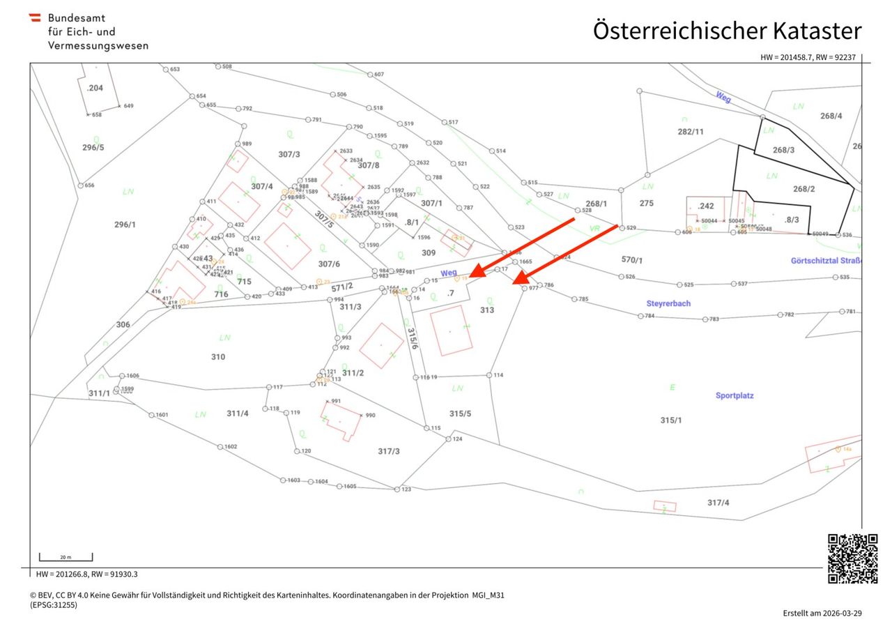 Ergänzt wird das Angebot durch eine Garage mit ca. 16,6 m² sowie eine Carport- bzw. Verandafläche mit ca. 25,4 m². Das Grundstück umfasst insgesamt 1.258,9 m² und ist als Bauland Dorfgebiet gewidmet. Dadurch bietet die Liegenschaft nicht nur viel Freiraum rund ums Haus, sondern auch ein äußerst angenehmes Wohnumfeld.