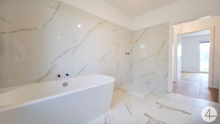 Der Bungalow bietet Ihnen drei großzügige Schlafzimmer, die individuell gestaltet werden können, ideal für die ganze Familie oder als Gästezimmer. Jedes Zimmer strahlt Ruhe und Geborgenheit aus und ermöglicht erholsame Nächte. Das helle Badezimmer ist ein weiteres Highlight: Es kommt sowohl mit einer Dusche als auch einer Badewanne daher und bietet Ihnen den perfekten Rückzugsort für entspannte Wellnessmomente.