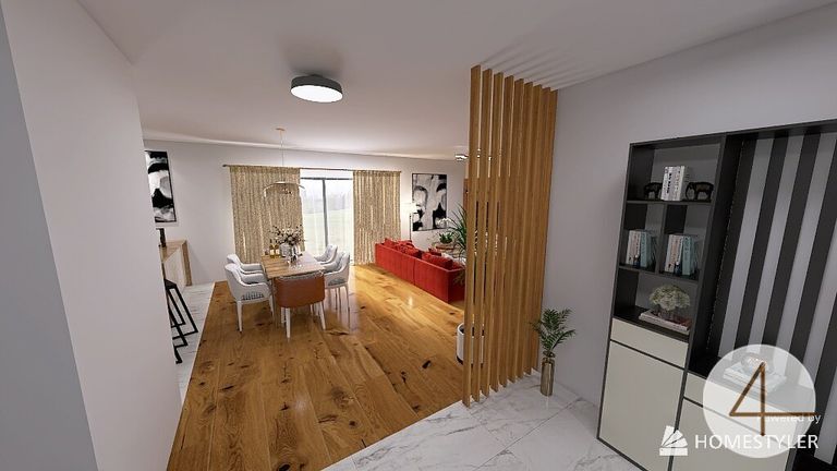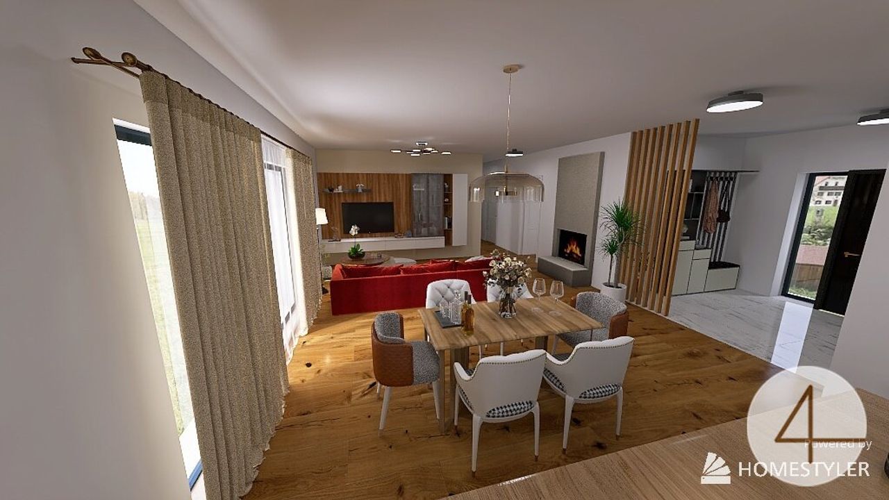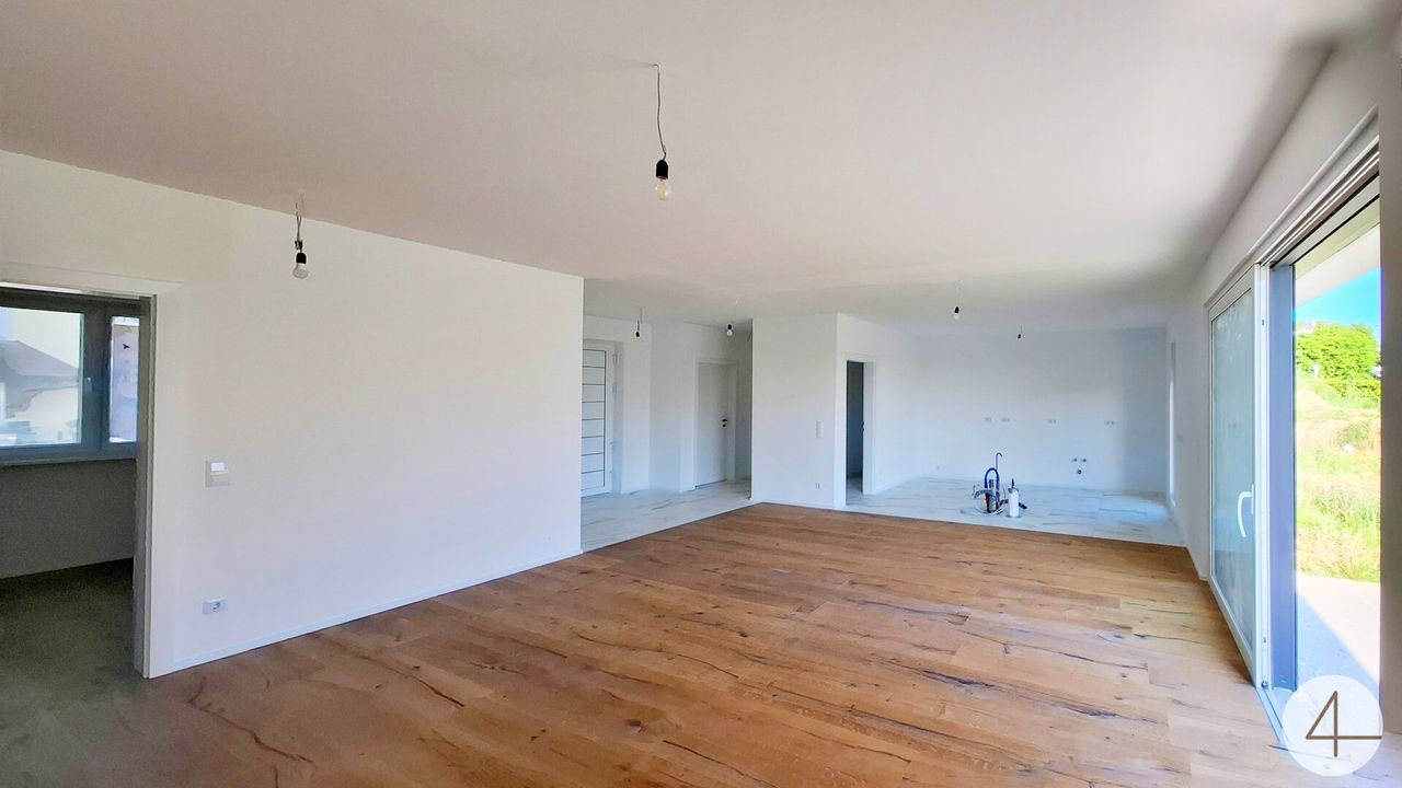 Genießen Sie gemeinsame Mahlzeiten am großzügigen Esstisch und erleben Sie unvergessliche Momente in stilvollem Ambiente. Der nahtlose Übergang vom Wohnbereich zur Küche fördert die Kommunikation und schafft eine behagliche Atmosphäre. Durch den Ausgang auf die Terrasse mitten im Raum, haben Sie eine natürliche Erweiterung vom Wohnzimmer in den Außenbereich.