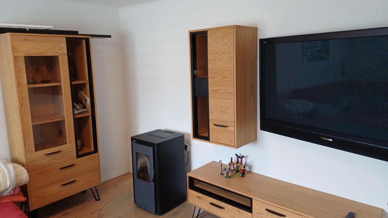 Derzeit befindet sich hier eine Ofenheizung (Pelletsofen) im Wohnzimmer, sowie Infrarot-Heizpaneele in den restlichen Räumen.