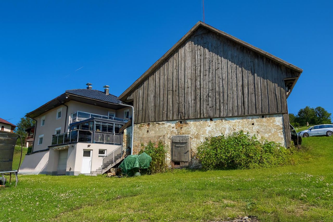 Das Wohnhaus umfasst aktuell zwei Wohneinheiten. Die Hauptwohnung überzeugt durch eine durchdachte Raumaufteilung: Eine Küche, ein Wohnzimmer, ein Esszimmer, ein Schlafzimmer, ein Vorraum, ein Badezimmer sowie ein Hauswirtschaftsraum und der Heizraum bilden eine funktionale Einheit im Erdgeschoß. Im Obergeschoß stehen ein Vorraum, ein Büro, ein weiteres Badezimmer sowie drei zusätzliche Zimmer zur Verfügung – diese Räume eignen sich hervorragend, um daraus eine dritte, abgeschlossene Wohneinheit zu schaffen. Eine eigene Haustüre sowie Küchenanschlüsse sind bereits vorhanden, wodurch eine getrennte Nutzung unkompliziert realisierbar ist.
