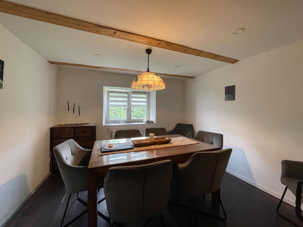 Die Einliegerwohnung im Obergeschoss ist separat zugänglich und umfasst einen offenen Koch-, Wohn- und Essbereich, ein Schlafzimmer sowie ein Badezimmer. Somit bietet das Gebäude bereits mehrere eigenständige Wohnbereiche und kann flexibel an individuelle Bedürfnisse angepasst werden.