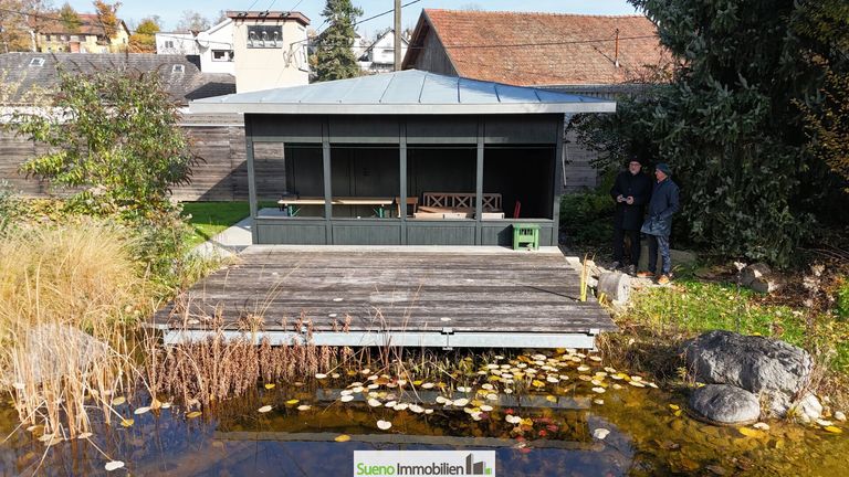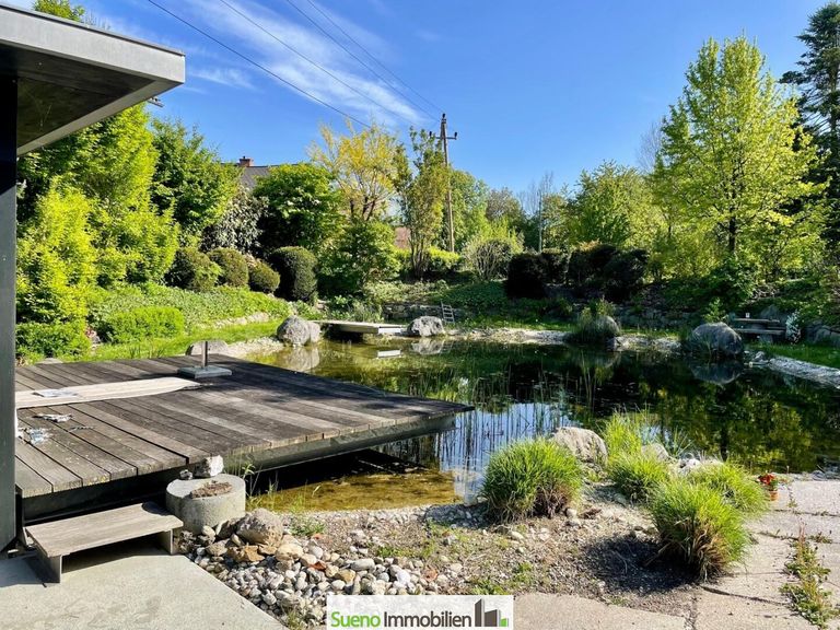 * Traumhafte Gartenanlage mit wunderschönem Gartenteich mit Skimmeranlage und Steg!