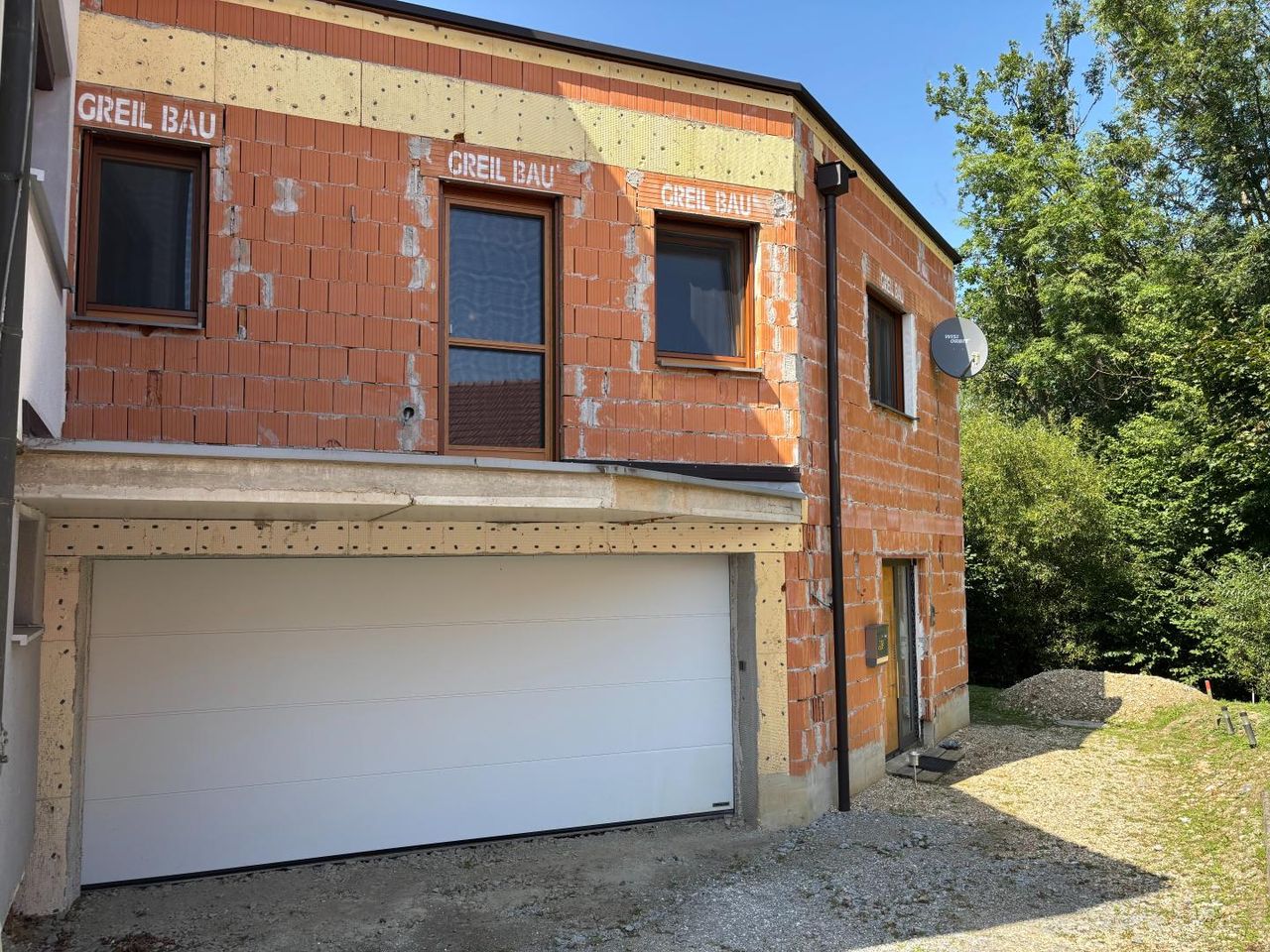 Dieses moderne Wohngebäude mit Glasfaseranschluss in der Gemeinde Eggerding im Innviertel erstreckt sich über ca. 77 m² und wurde im Jahr 2022 von der Fima Greil Bau errichtet. Das Erdgeschoss beherbergt die Doppelgarage, die mit einer Schmutzschleuse und einem praktischen Hauswirtschaftsraum ausgestattet ist. Über eine Treppe gelangt man in das Obergeschoss, das als zentrale Wohnebene dient und alle Wohnräume vereint. Der Wohn- und Essbereich bietet eine moderne Küche mit einer gemütlichen Essecke, die Platz für gesellige Zusammenkünfte bietet. Große Fensterflächen lassen viel Tageslicht herein und bieten einen schönen Blick in die grüne Umgebung.