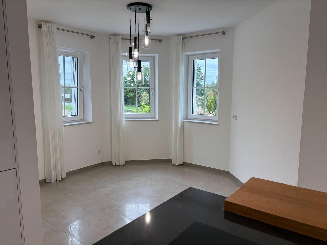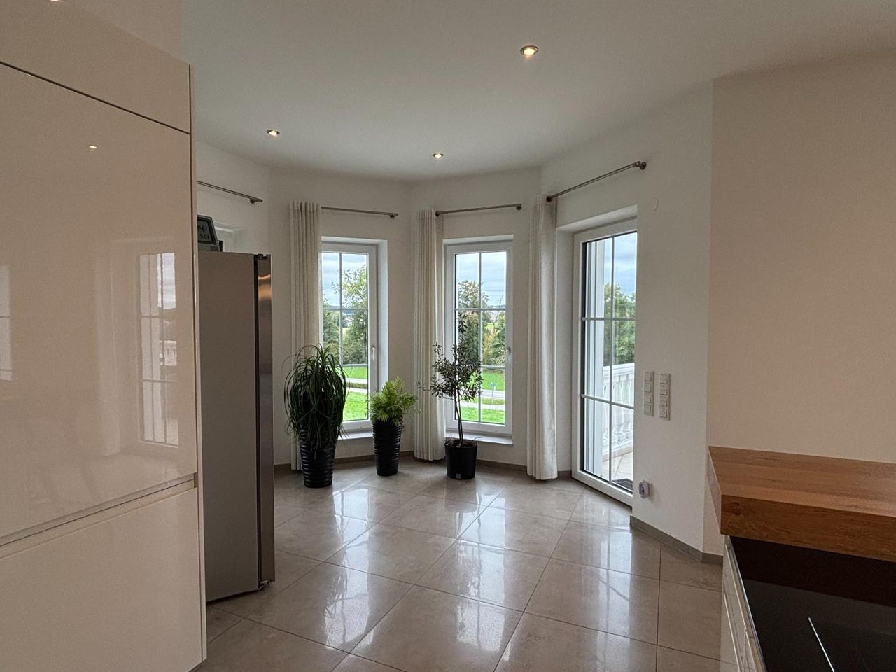 Große Fensterflächen schaffen lichtdurchflutete Wohnräume und eröffnen den Blick in die umliegende Natur. Der großzügige Balkon im Erdgeschoss sowie die weitläufige Terrasse im Untergeschoss laden zum Entspannen und Genießen ein. Hier können Sie sonnige Stunden in ruhiger Atmosphäre verbringen und den Ausblick ins Grüne auf sich wirken lassen.