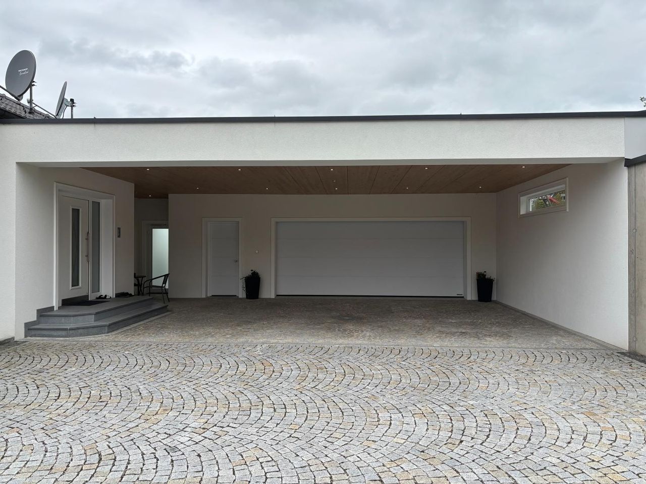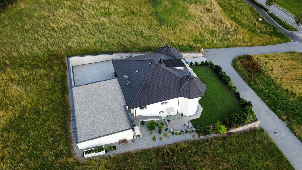 Auch technisch erfüllt die Villa höchste Ansprüche: Eine moderne Wärmepumpe sorgt für effiziente Energieversorgung, während eine Klimaanlage jederzeit für angenehmes Raumklima garantiert. Abgerundet wird das Angebot durch eine Doppelgarage mit eigenem WC und ausreichend Abstellfläche, ein großzügiges Carport, das zusätzlich Platz für drei weitere überdachte Stellplätze bietet sowie weitere 3 - 4 Autoabstellplätze im Freiem mit Umkehrplatz – so steht ausreichend Raum für Fahrzeuge, Fahrräder und Freizeitbedarf zur Verfügung.