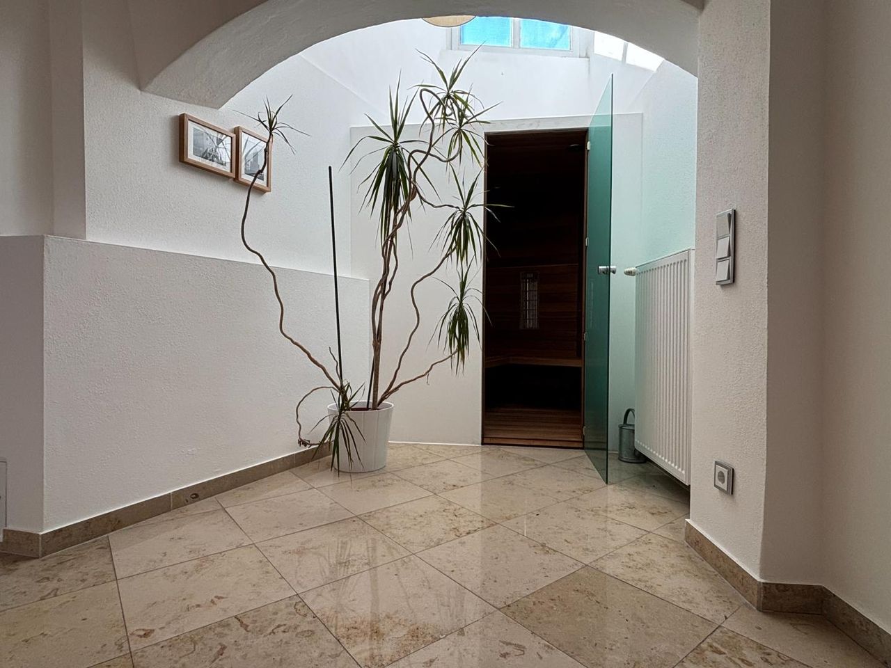 Ein besonderes Highlight stellt die Dachterrasse dar, die einen wunderbaren Rückzugsort mitten in der Stadt bietet und zum Entspannen über den Dächern von Schärding einlädt. Für zusätzlichen Komfort und Wohlbefinden sorgt zudem eine im Haus integrierte Sauna, die entspannte Wellnessmomente in den eigenen vier Wänden ermöglicht.