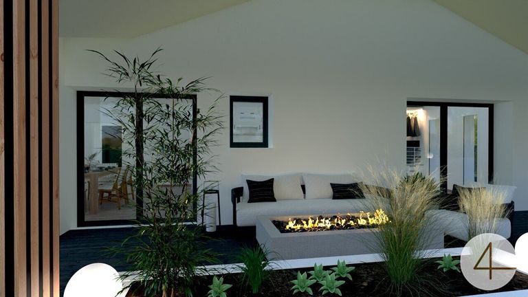 Der Bungalow überzeugt durch sein offenes Raumkonzept, das ein helles und freundliches Wohnambiente schafft. Beim Betreten des Hauses werden Sie sofort von dem lichtdurchfluteten Wohnbereich empfangen, der ideal für entspannte Abende mit Familie und Freunden ist. Die große Fensterfront lässt viel Tageslicht herein und eröffnet einen herrlichen Blick auf den Garten, den Sie nach Belieben gestalten können.