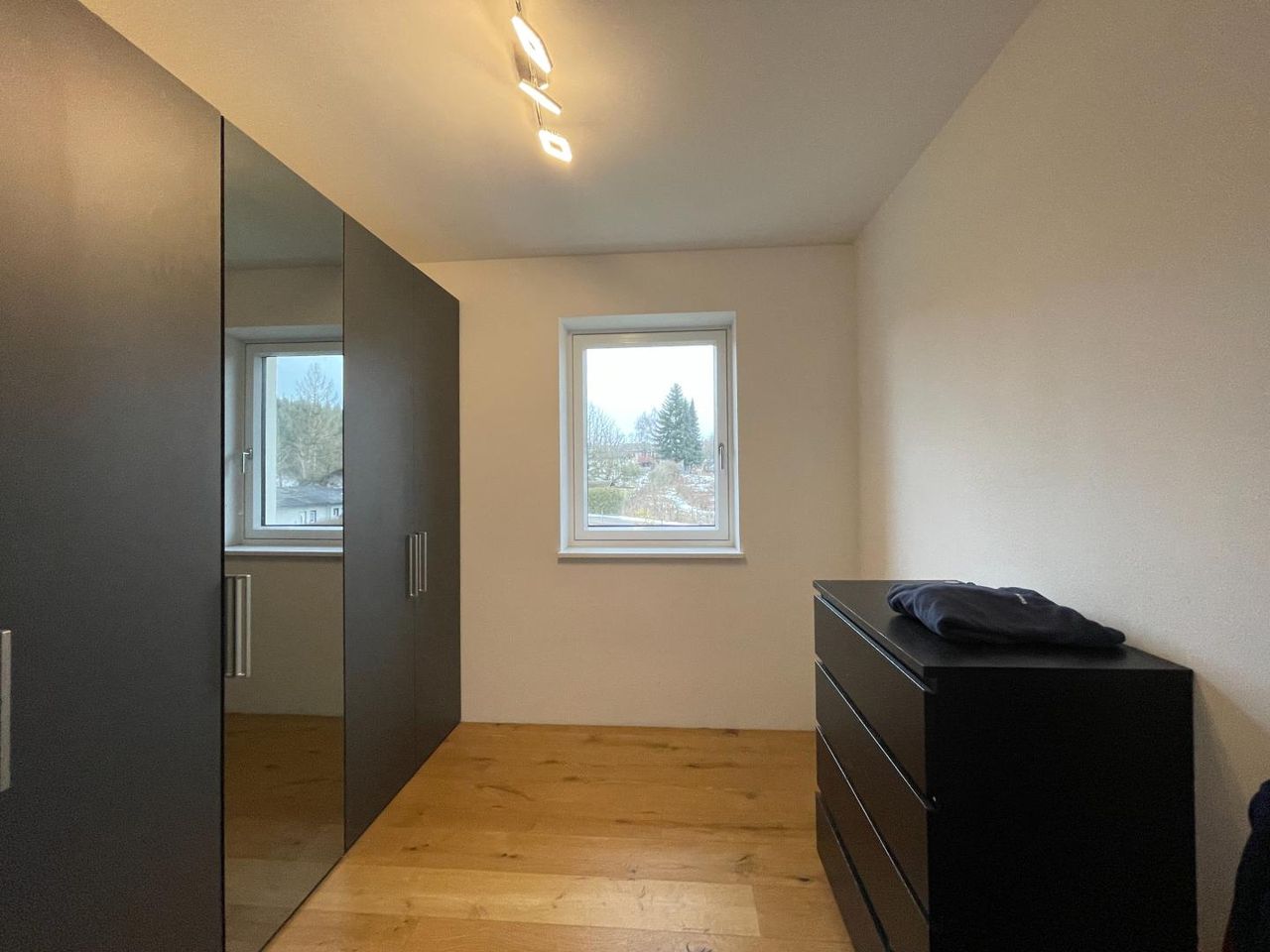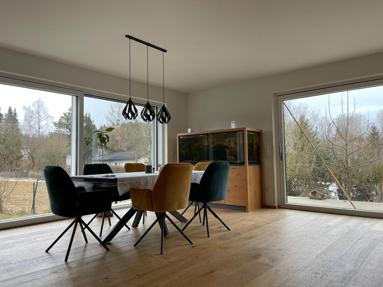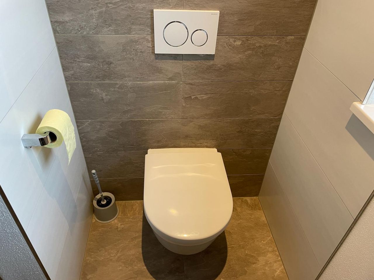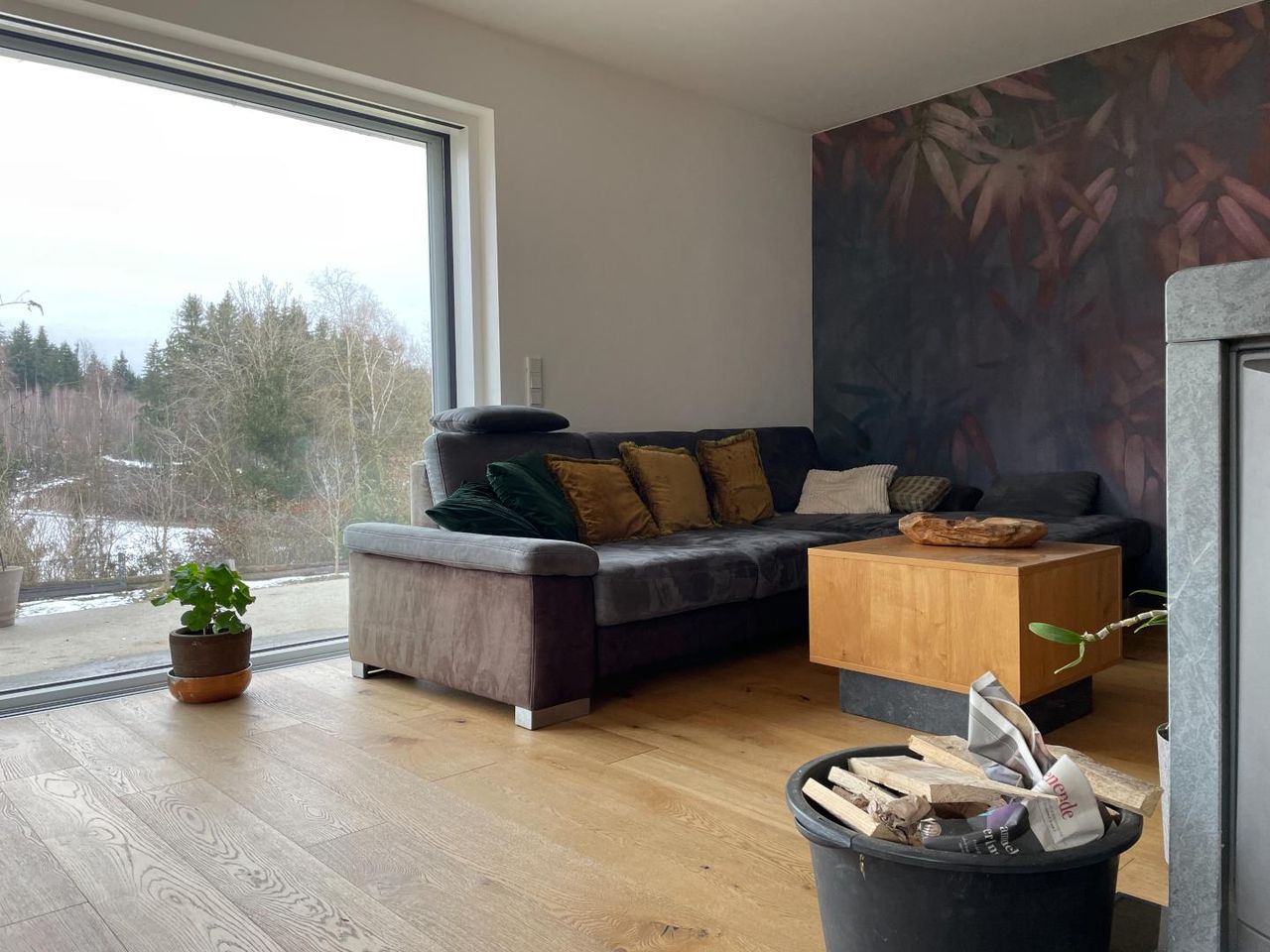 Für wohlige Wärme sorgt eine moderne Luftwärmepumpe in Kombination mit Fußbodenheizung. Ergänzt wird das nachhaltige Energiekonzept durch eine Solaranlage zur Warmwasseraufbereitung. An kühleren Tagen schafft der zusätzliche Schwedenofen eine besonders gemütliche Atmosphäre und unterstreicht den Wohnkomfort.